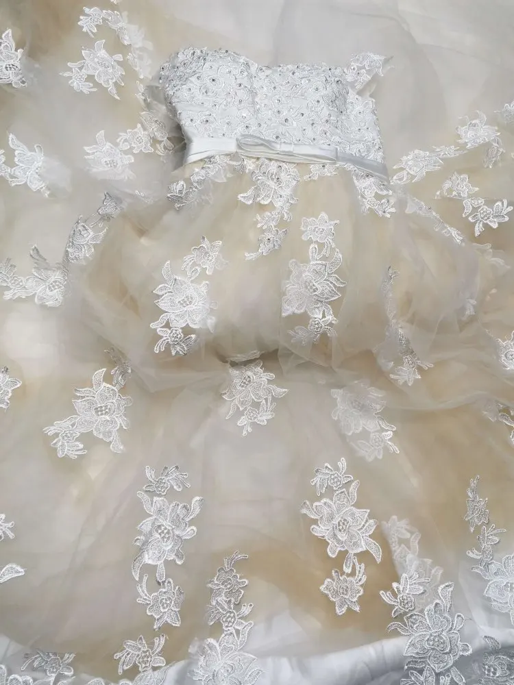 Роскошное бальное платье, белое свадебное платье с кружевной апплик...