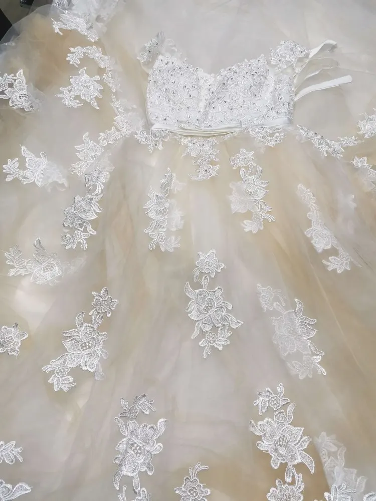 Белое Тюлевое платье-трапеция с аппликацией, свадебные платья на бр...