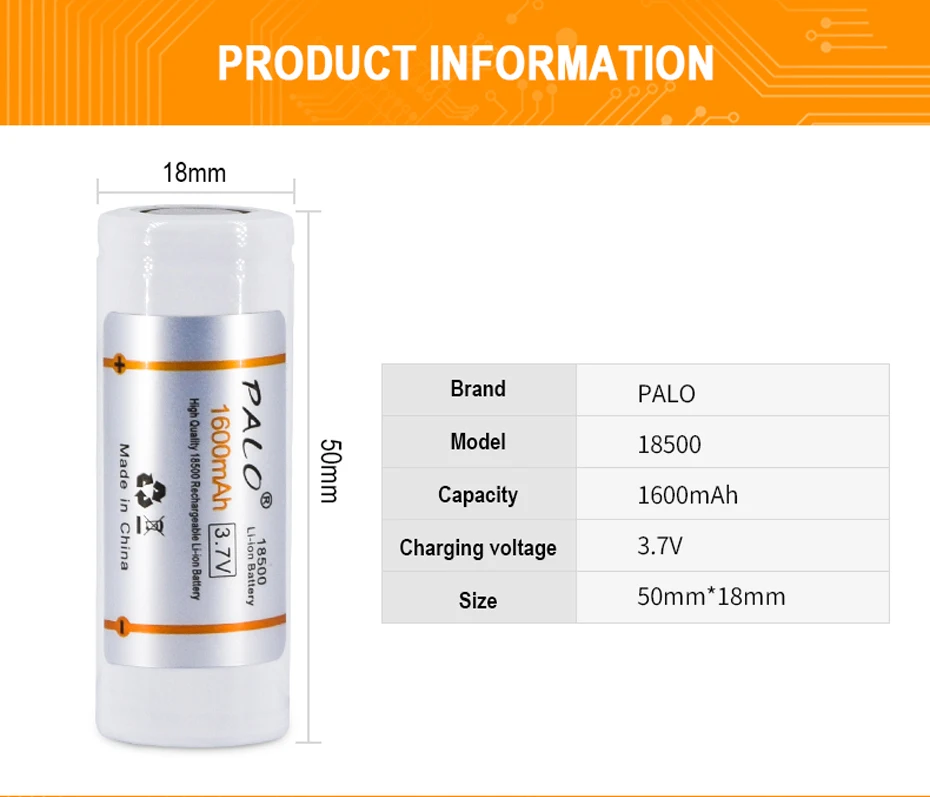 ★Режим: перезаряжаемый аккумулятор 18500 ★Материал: литий ★Напряжение: 3,7 в ★Емкость: 1600 мАч