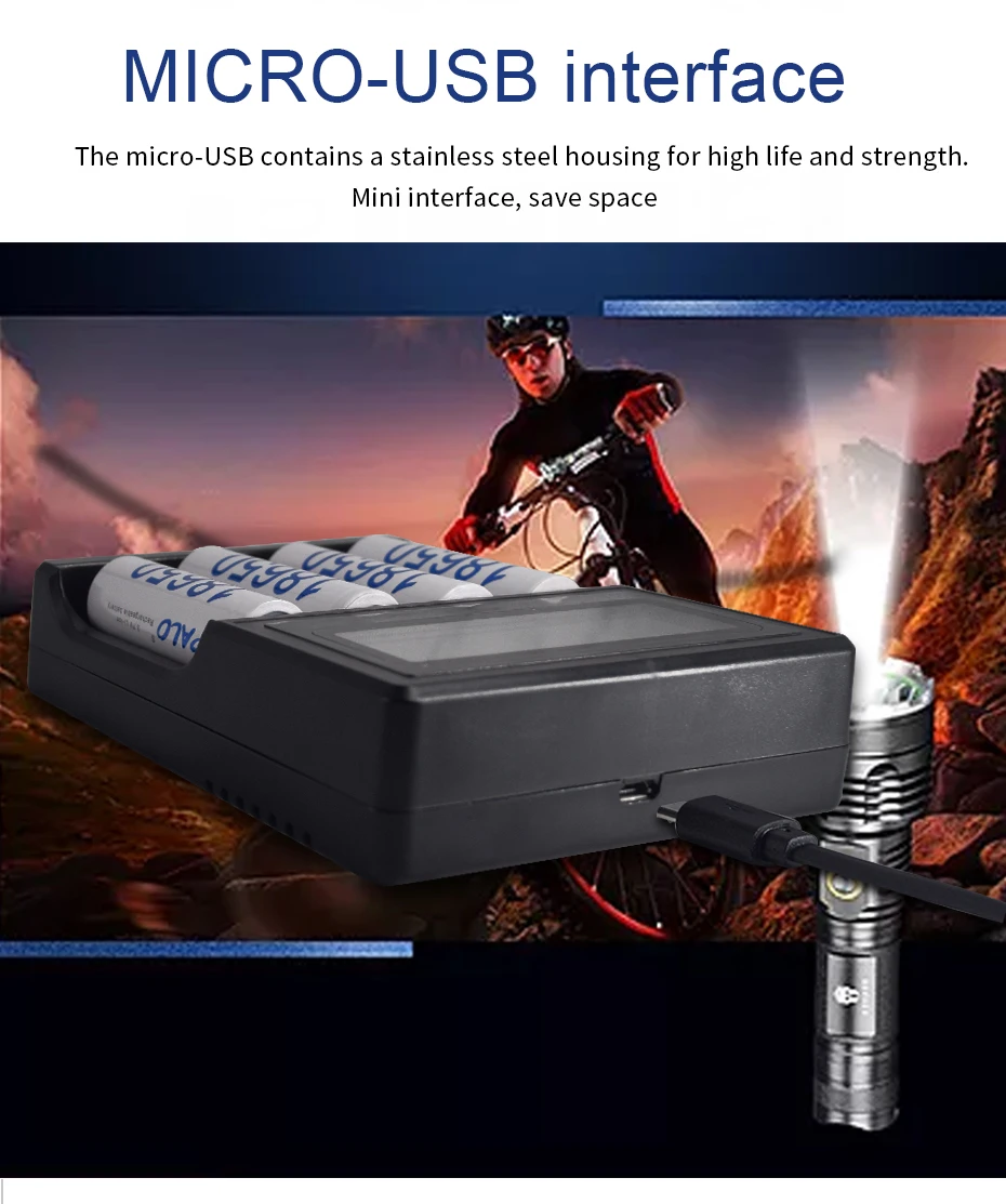 Перезаряжаемая батарея 18500, литий-ионный аккумулятор 3,7 в, 1600 мАч, 4 слота, умное зарядное устройство для литиевых аккумуляторов 3,7 в, размер 14500 16350 18500 18650