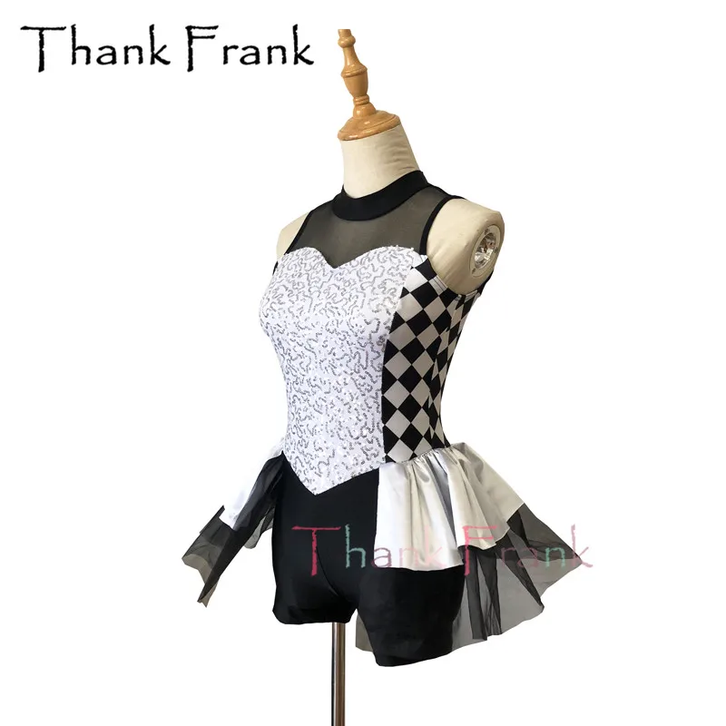 Костюм джазового крана для девочек с блестками, женские черно-белые костюмы для современных танцев, детское короткое платье без рукавов для танцев, C618