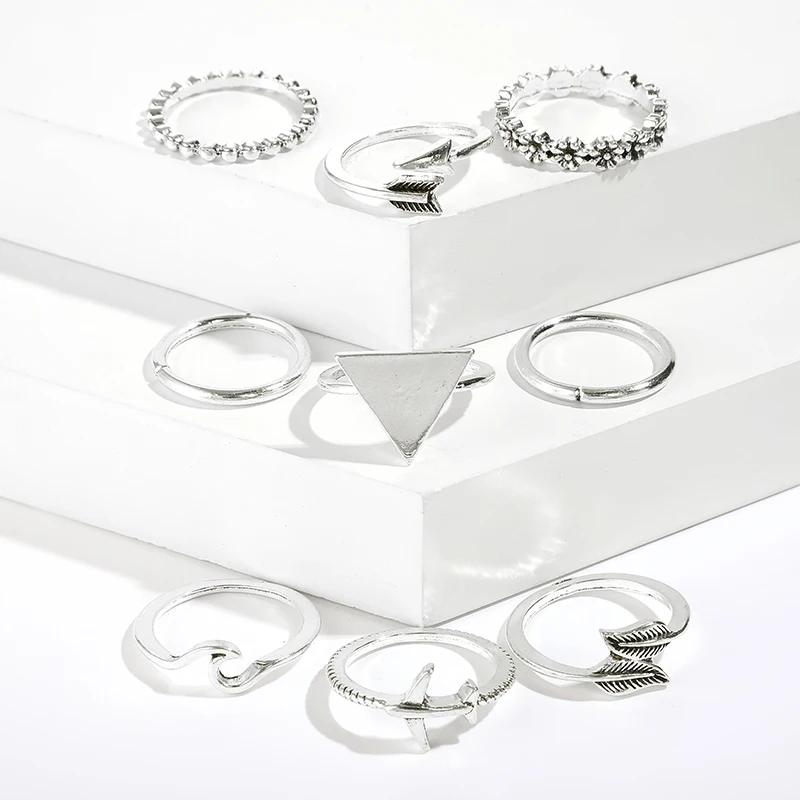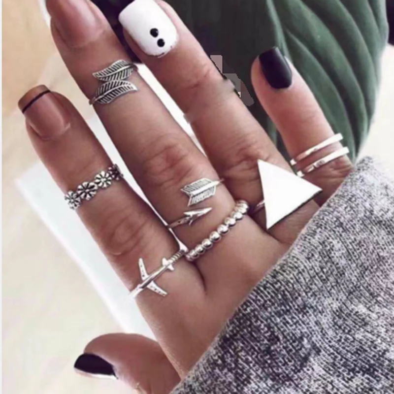 Tocona 9 шт.компл. богемные серебряные геометрические кольца для женщин ретро цветочные листья костяшки кольца Свадебные ювелирные изделия подарок 9078