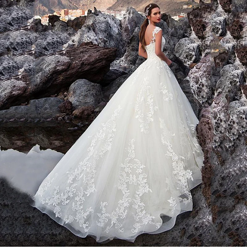 Тюлевые Свадебные платья-трапеции с V-образным вырезом, сексуальные кружевные платья с открытой спиной и аппликацией со шлейфом, женское свадебное платье