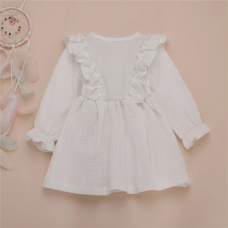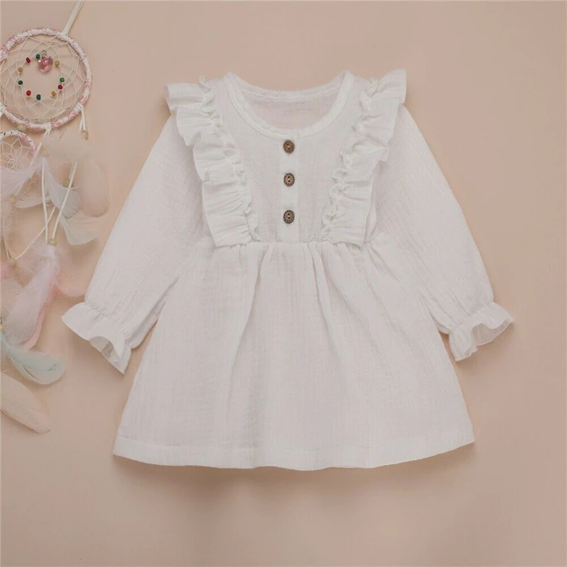 Платье с длинными рукавами и оборками для маленьких девочек хлопковая льняная одежда Детские платья для девочек, 4 цвета, 1-6 лет
