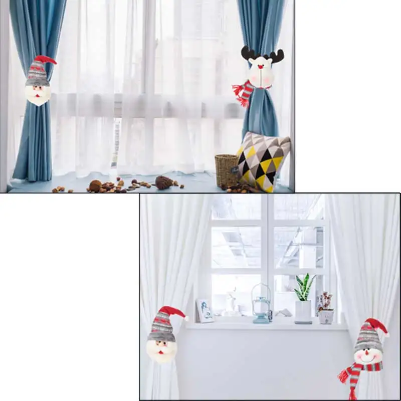 1 шт. Рождественская занавеска для дома, гостиной, спальни, мультяшный снеговик, лось, Санта, занавеска с пряжкой, крючок, Рождество, Новый Год, сделай сам, Декор