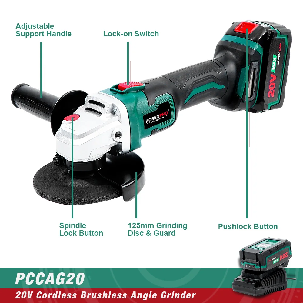 1*20 V Беспроводная бесщеточная угловая шлифовальная машина