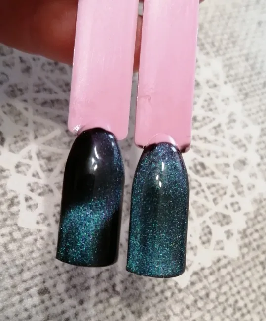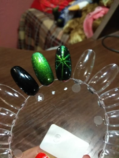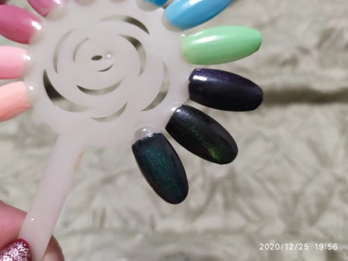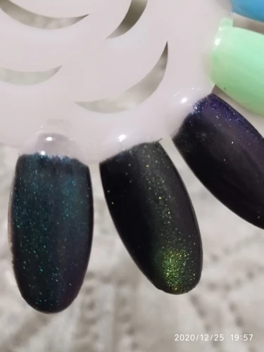 доставка была 5 месяцев, хотя другие товары у продавца брала и приходили за месяц. вернули деньги по спору, обратно вернуть продавцу не удалось. так хоть 5 звезд ему поставлю. лак красивый, переливается из зелёного в фиолетовый, серый и синий