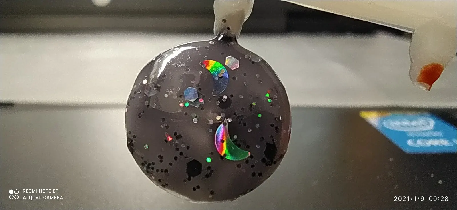 Прибыло примерно через 1 месяц. Может быть около половины банки, средней плотности по текстуре, средней толщины по цвету с несколькими видами голообразных блесток, выглядит хорошо. На белом наконечнике есть 2 слоя. Доволен, спасибо