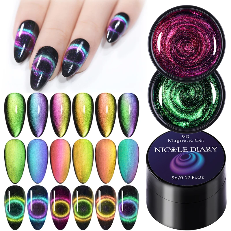 Полуперманентный Гель-лак для ногтей NICOLE DIARY 9D cat Гель-лак для использования с магнитом, хамелеон для использования с магнитом, удаляемый замачиванием, 5 мл