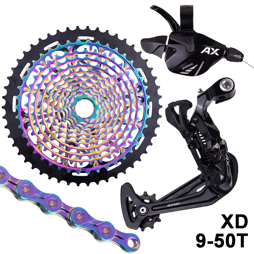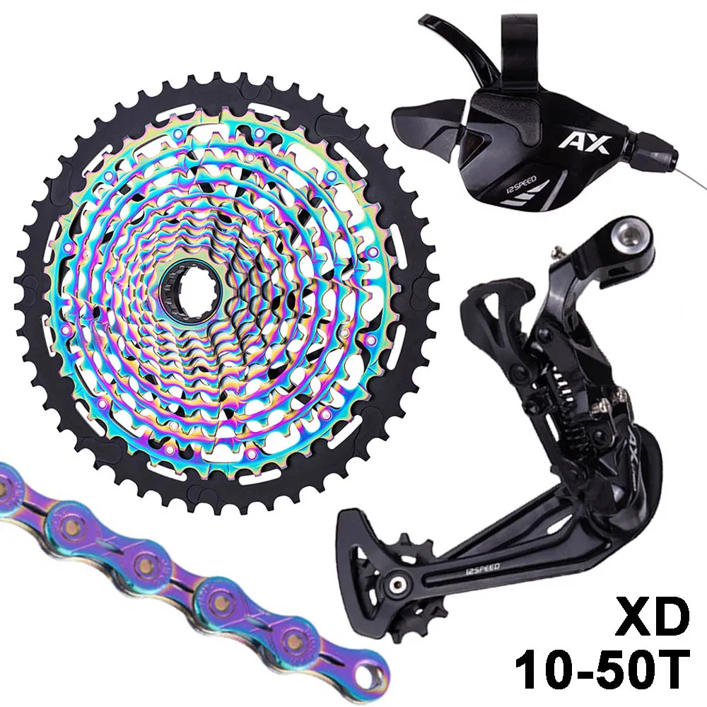Переключатель переключения передач + XD 10-50T кассета с радугой + 12 Скоростей EL Радужная цепь