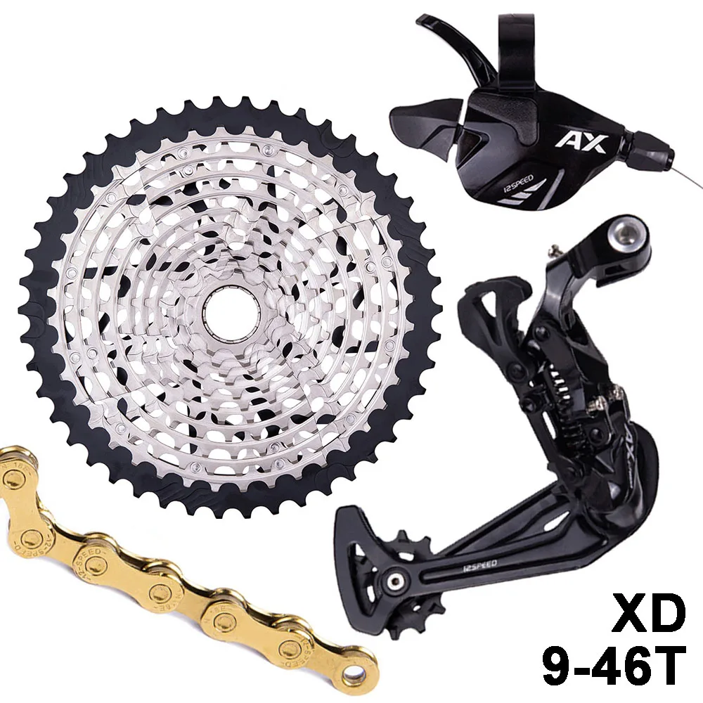Переключатель переключения передач + XD 9-46T кассета с серебром + 12 Скоростей Золотая цепь