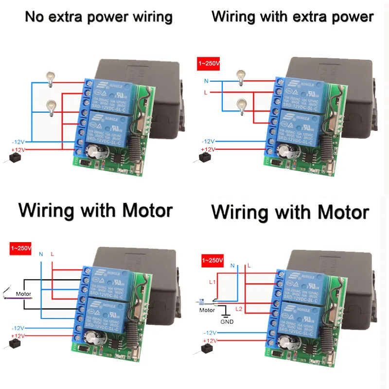 Беспроводной универсальный пульт дистанционного управления, 433 МГц, 12 В постоянного тока, 10 А, 2 канала, радиочастотный релейный приемник и передатчик для дорожной дверипереключателя двигателя
