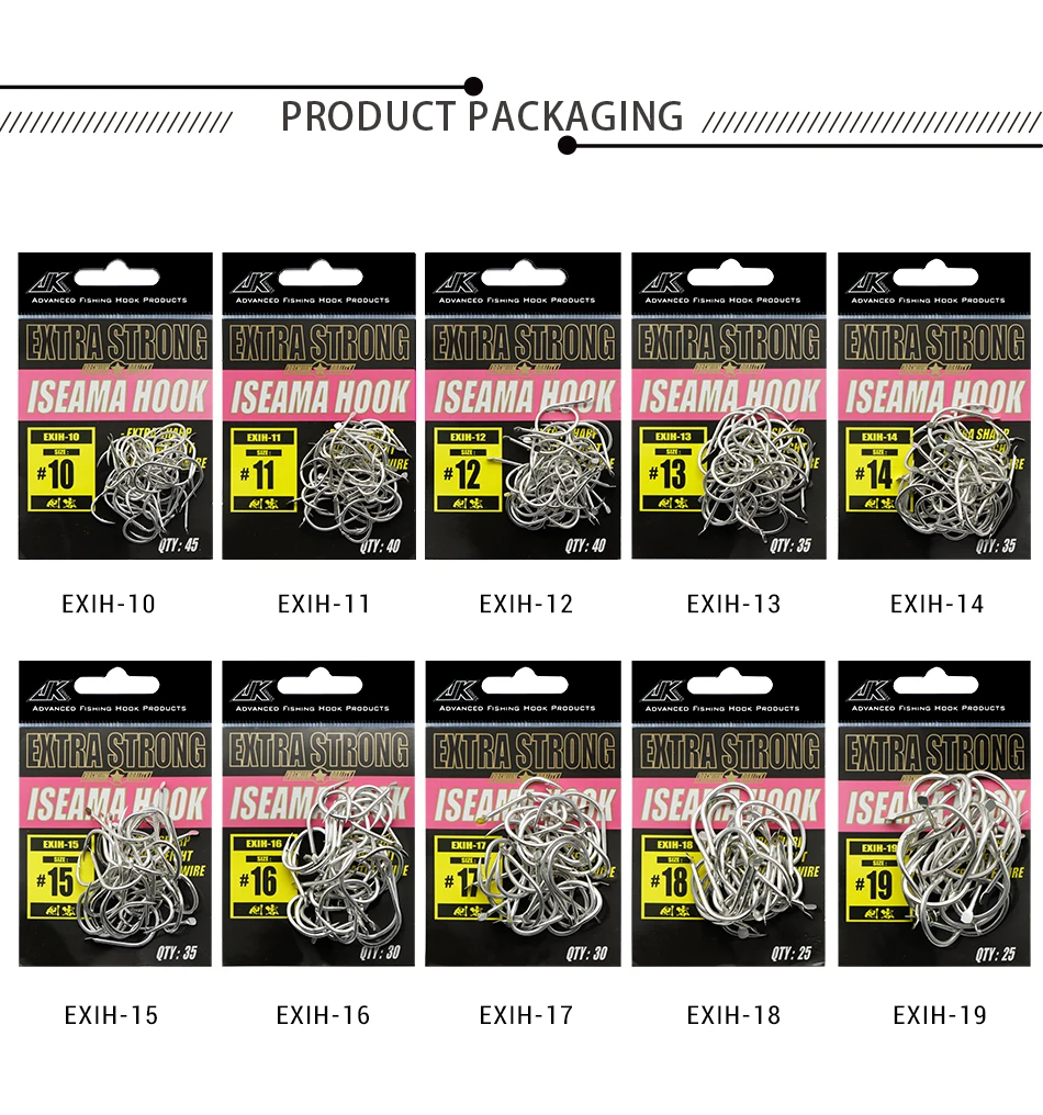 JK EXIH #10-19 размер 25-45 шт. рыболовные крючки из высокоуглеродистой стали японские крючки светильник морские крючки для джиггинга карпа одиночный зазубренный крючок