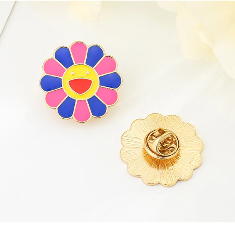 Цветная эмалированная брошь в виде цветка, семь цветов, Подсолнух, улыбающееся лицо, булавка на лацкан, напоминайте себе, счастливого дня, значок на каждый день, ювелирное изделие
