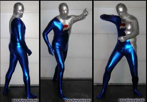 Сине-Серебряный Блестящий металлический костюм супергероя пепсимана, костюм для косплея Zentai, полный костюм для Хэллоуина, костюм для вечеринки