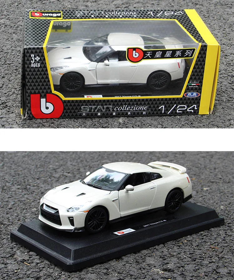 Модель автомобиля Bburago 1:24 2017 Nissan GTR, литье под давлением, модель автомобиля из сплава, имитация автомобиля, украшение, коллекционная игрушка в подарок