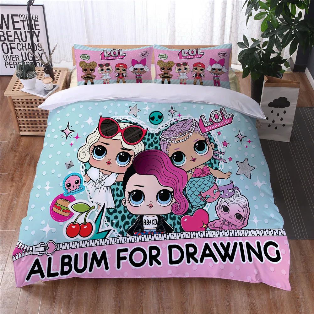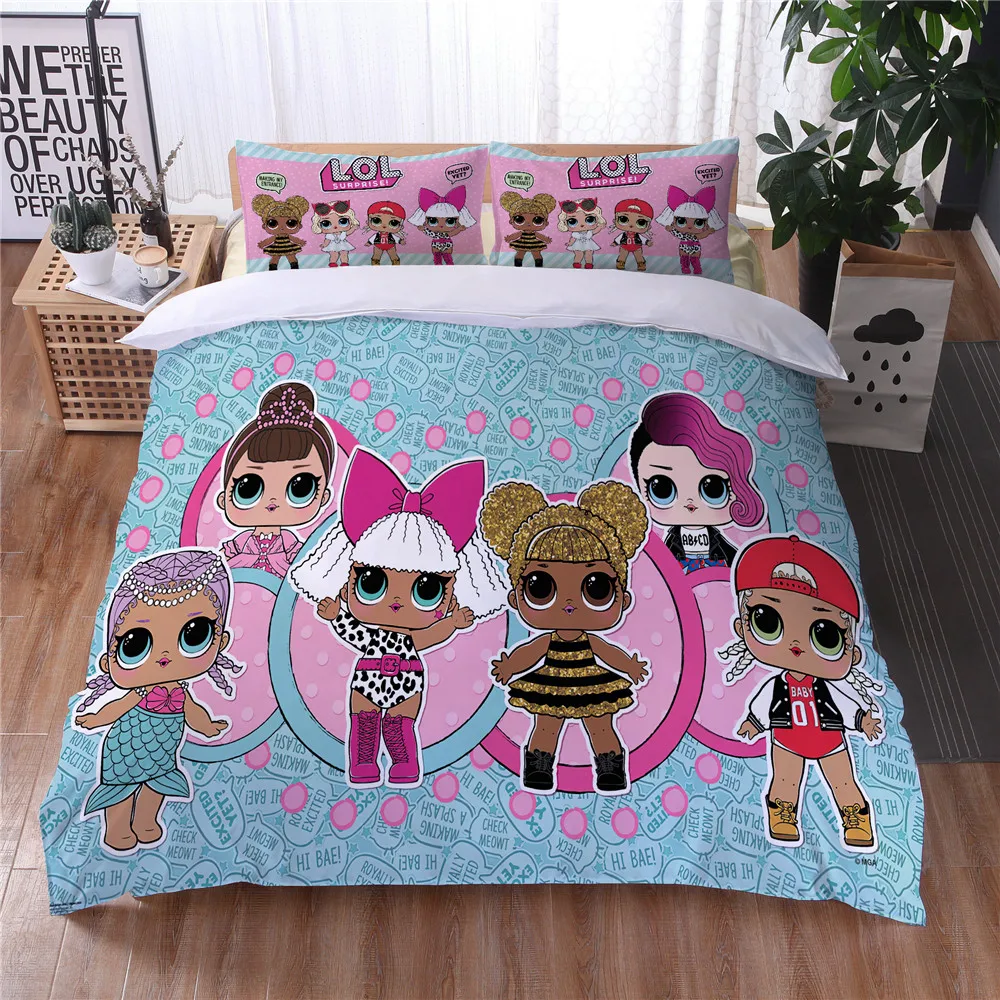 Из серии LOL Surprise Куклы Печать Подушка Чехол полиэстерное мягкое и 3 детали плед комплекты постельных принадлежностей, состоящие из пододеяльника, LoLs детское постельное белье набор Cuna