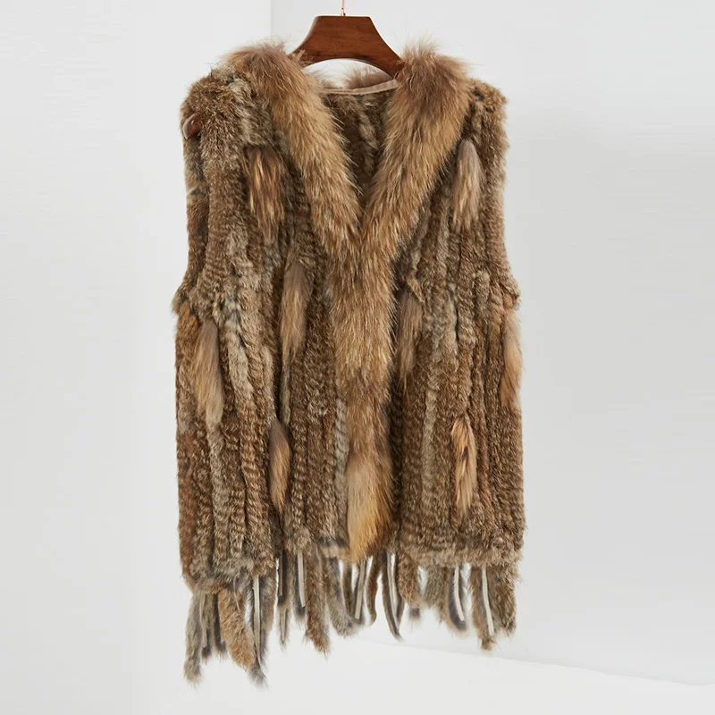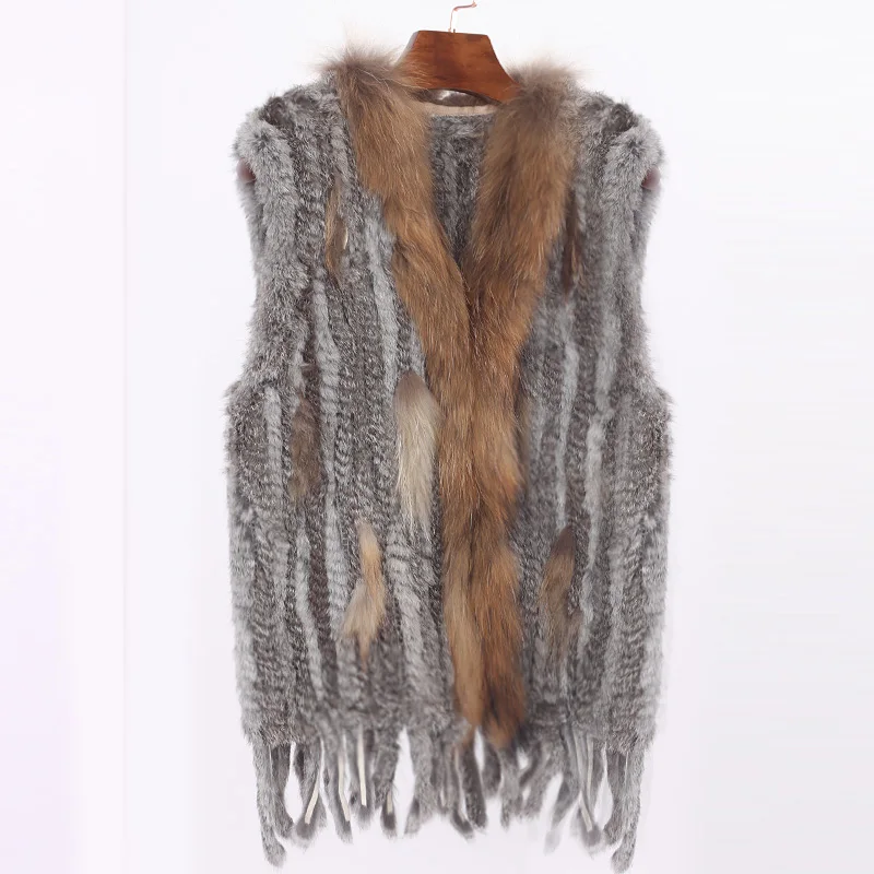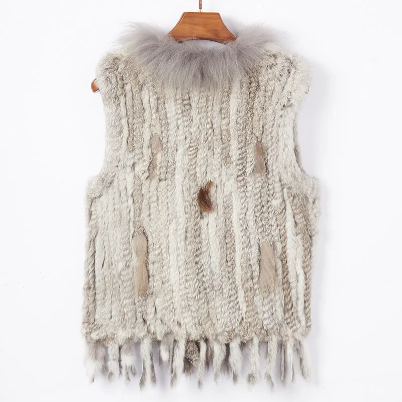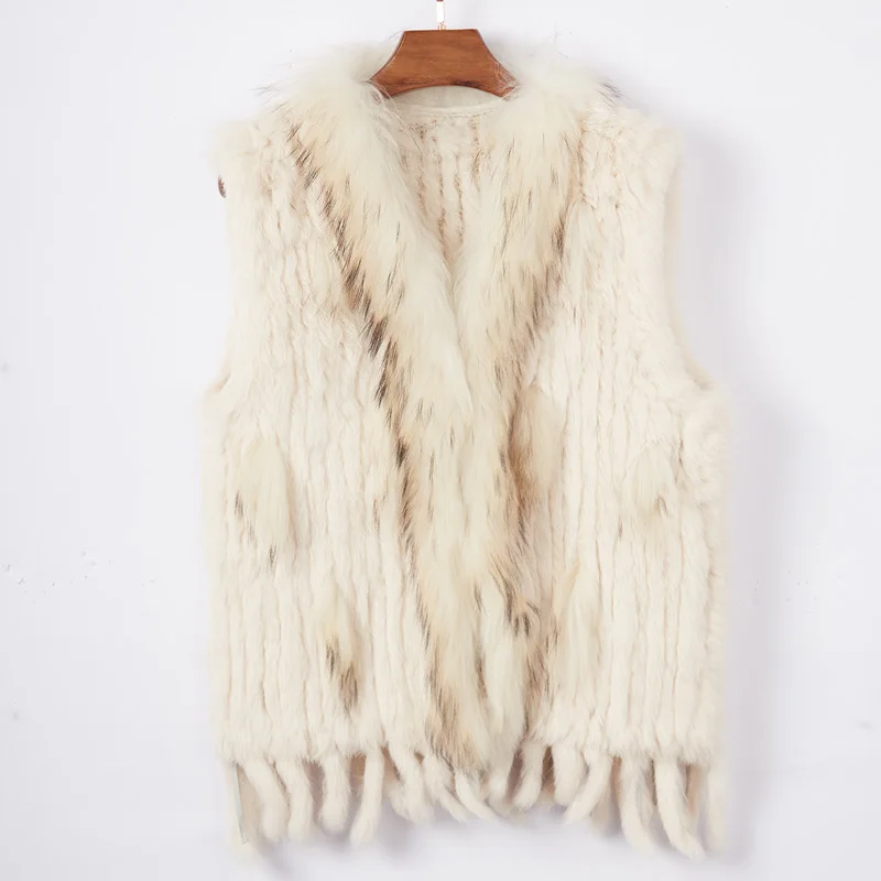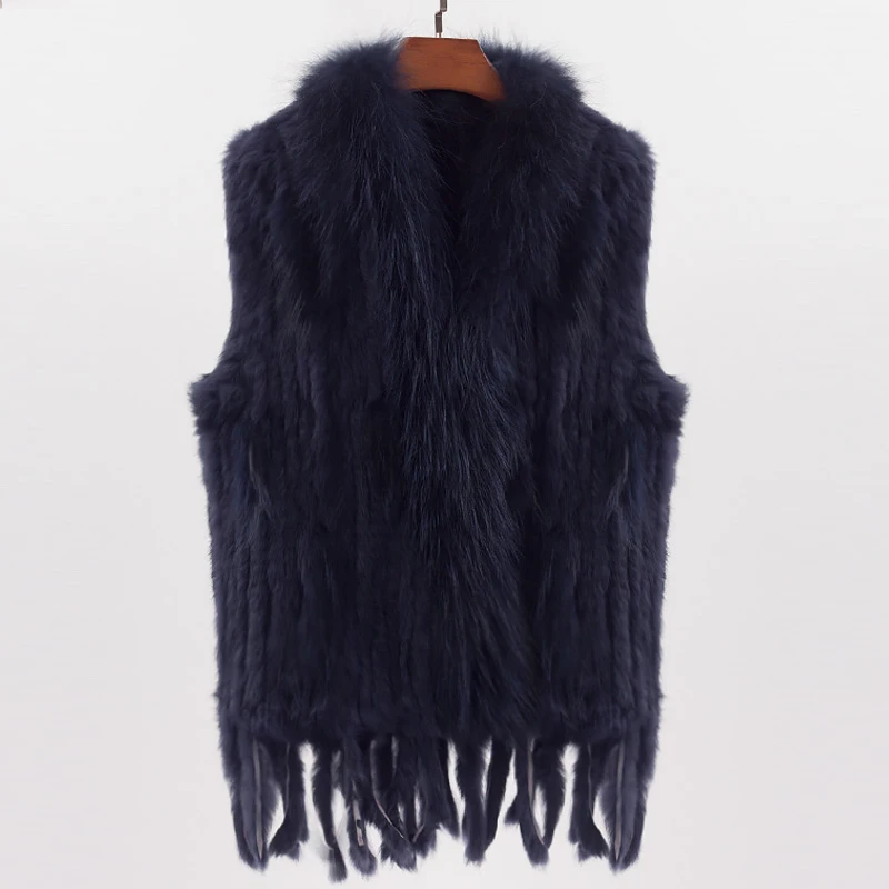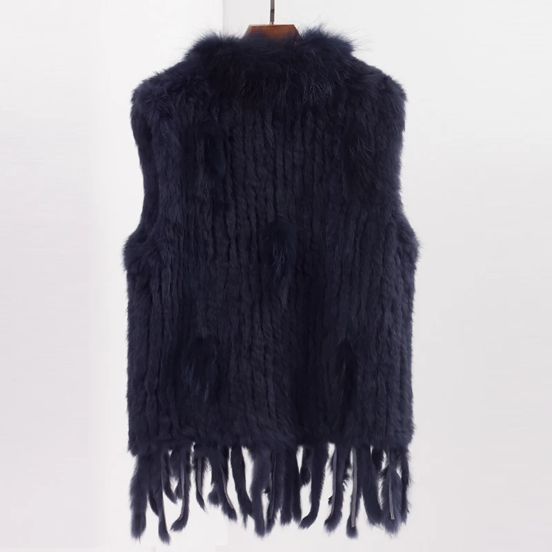 Knitted fur beanie vest women colorsWhite, Grey, Navy blue,black fur jackets