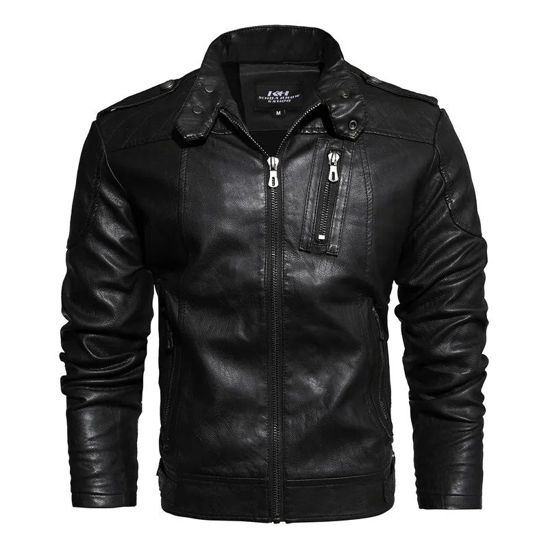 2019 модная брендовая одежда мужская кожаная куртка повседневные однотонные кожаные куртки воротник-стойка ветровка на молнии кожаная мужская куртка