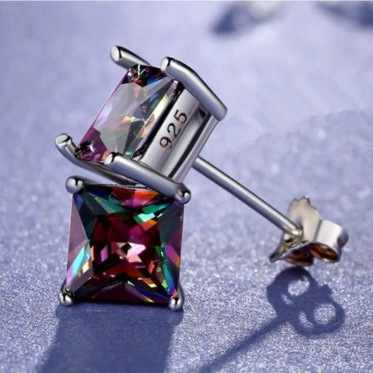 Серьги-гвоздики унисекс, серебристые, с радужным камнем, KAE137