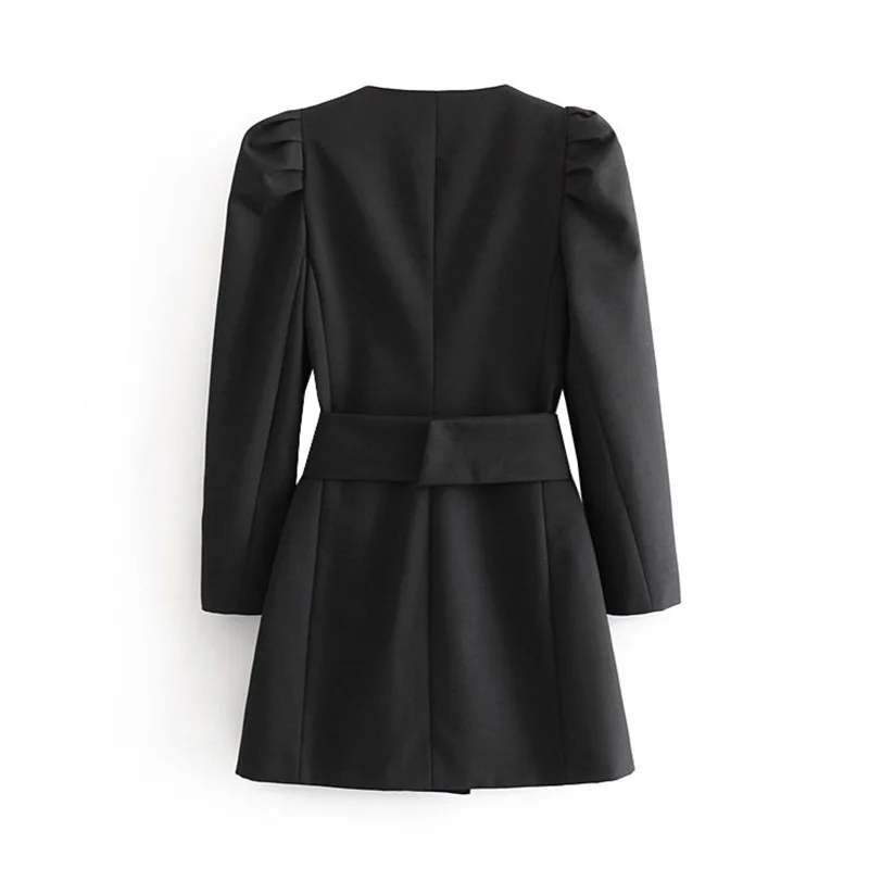 Платье-мини женское ТРАПЕЦИЕВИДНОЕ с V-образным вырезом и длинными рукавами-фонариками