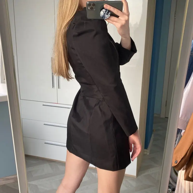 Платье . Мои параметры 93-73-99 размер S в облипку, и очень короткое на 158 см, попу не прикрывает. Надо было брать М. Если не кушать весь день, то влезаю в платье, все застегивается и норм (как на фото), но для комфорта правда лучше взять размер М. Ткань плотная, костюмная с подкладом 100% полиэстр, сейчас носить самое то, на осенние плюс 15-20°. Пояс не оч, блямба огромная, болтается, но это вообще пофиг. Буду носить с платьем или с низом (юбки, карри, брюки, леггинсы), короче буду носить как приталенный пиджак интересного кроя)) Итог: короткое на 158, плотная синтетика хорошего качества, непонятный пояс. Брала за 1300 с купоном продавца. Этих денег оно стоит и даже больше. Пришло меньше чем за 2 недели с момента заказа в Московскую. Бирки, этикетки на месте.