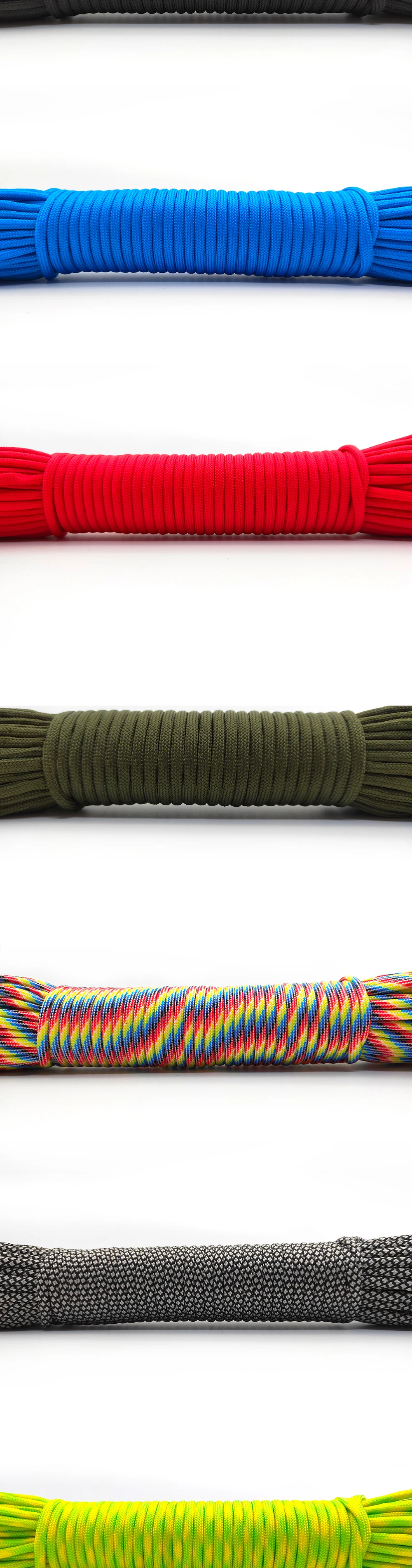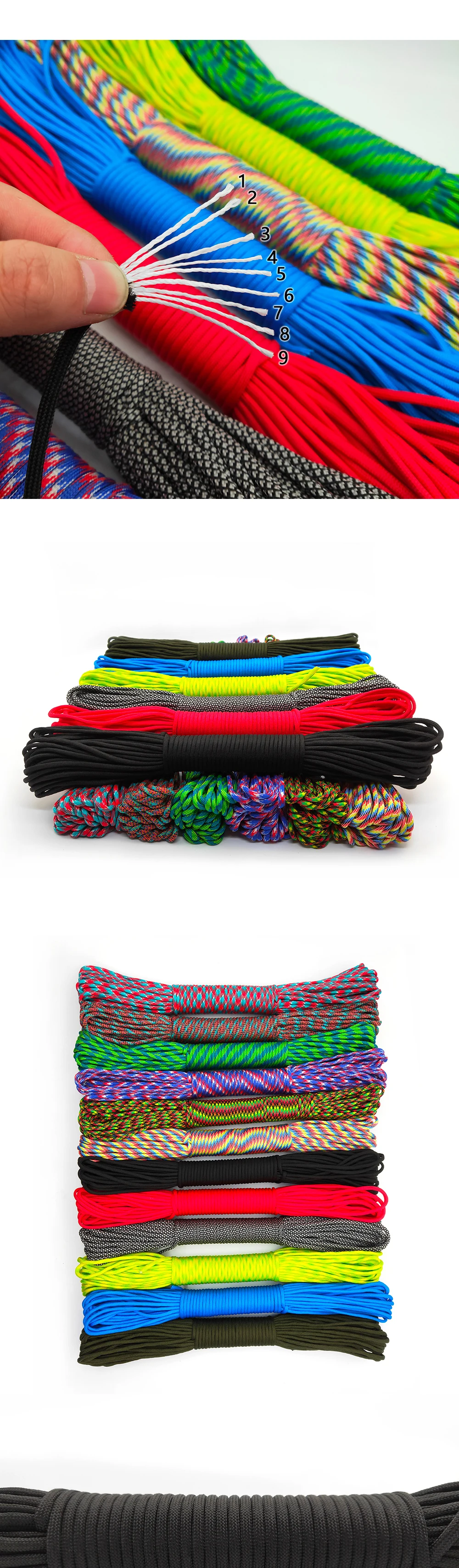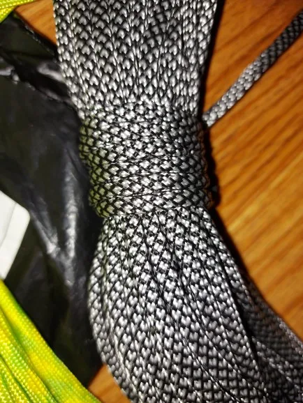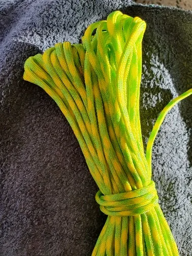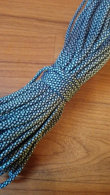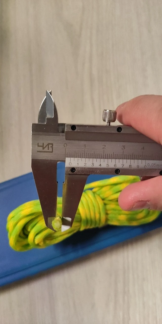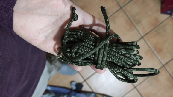 Заказал в двух цветах (на фото), по 5 м каждого. Товар шёл долго, больше 2-х месяцев, на территории России трек не отслеживался. С продавцом не связывался - без надобности. Один моток пришёл 4,84 м, второй - 4,90 м. Оплётка, на мой взгляд, слабовата (пушится местами и торчат пряди) и недостаточно плотно облегает внутренние жилы. Внутри 9 переплетённых жил, как в описании. Цвет порадовал: насыщенный, ровный, зелёный шнур даже со светоотражающим эффектом. На нагрузку на проверял, но субъективно доверять ему что-то очень ответственное я бы не стал, тут лучше подстраховаться. Для плетения браслетов, аксессуаров, для использования для бытовых нужд, не экстремальных, вполне подойдёт, как по цене, так и по внешнему виду. Хотя сделать навес, поставить палатку, примотать что-нибудь, думаю, шнуры справятся.
