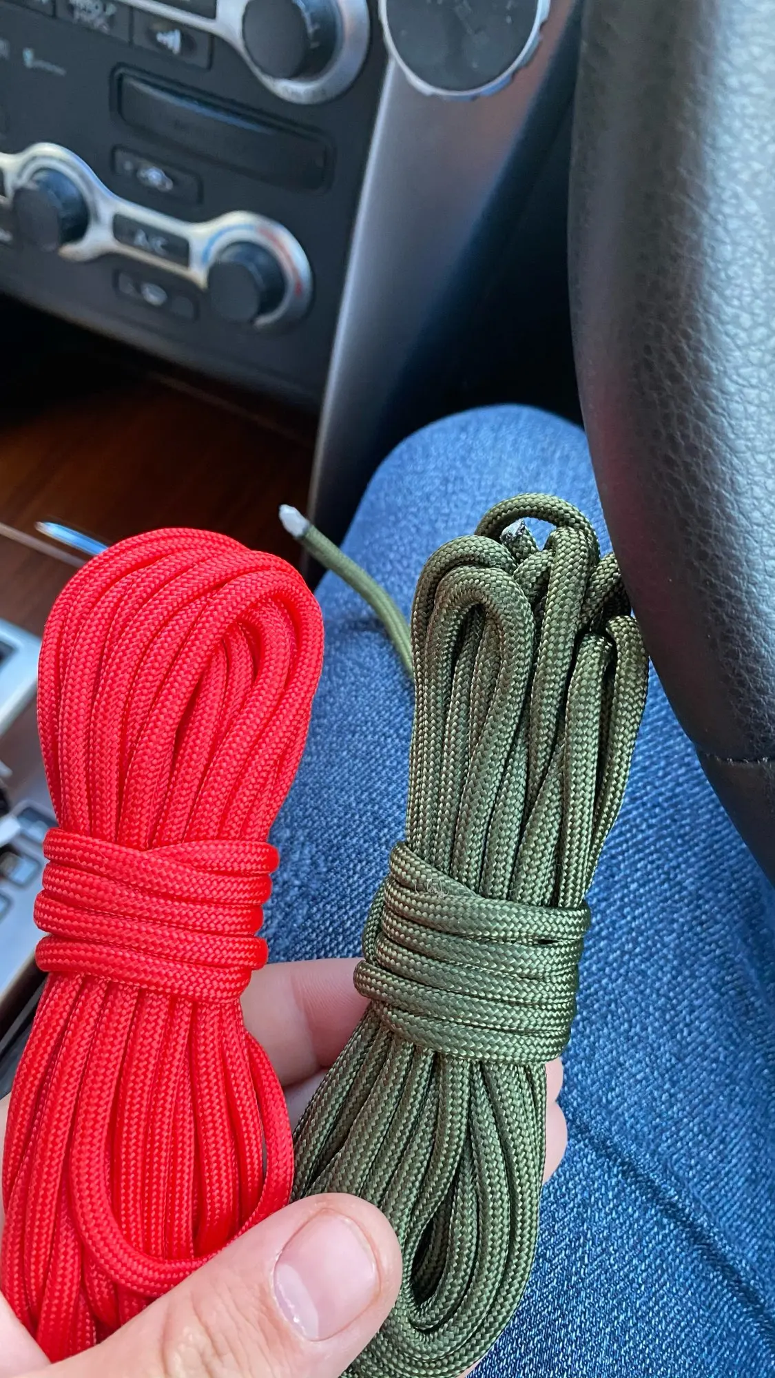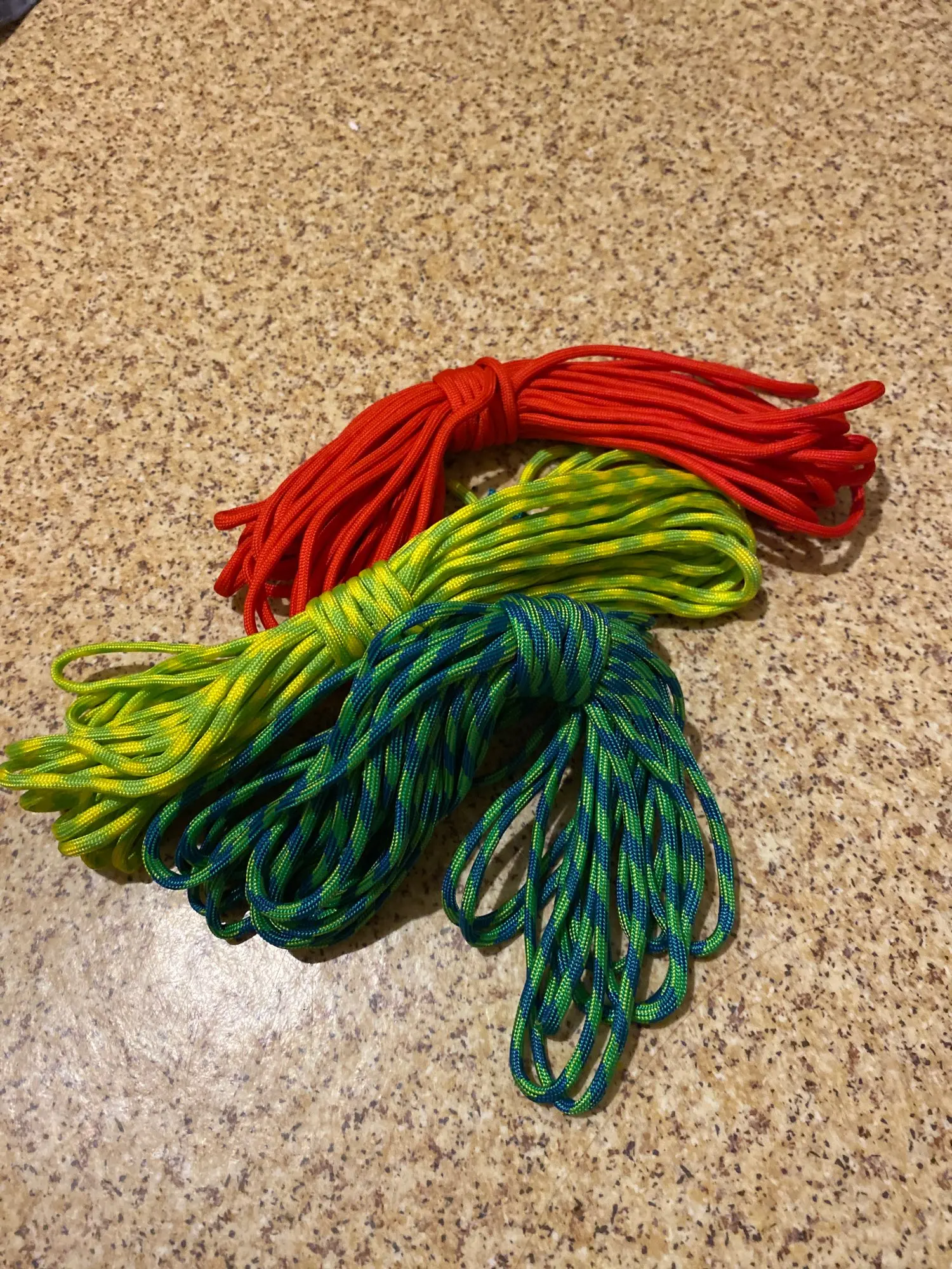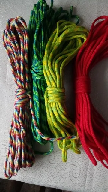 брал 3 цвета, синий, жёлтый. красный паракорд лучше всех смотрится в качестве темляка на ножах. сами же паракорд отличный и крепкий. до Подольска дошел за 2-3 недели.
