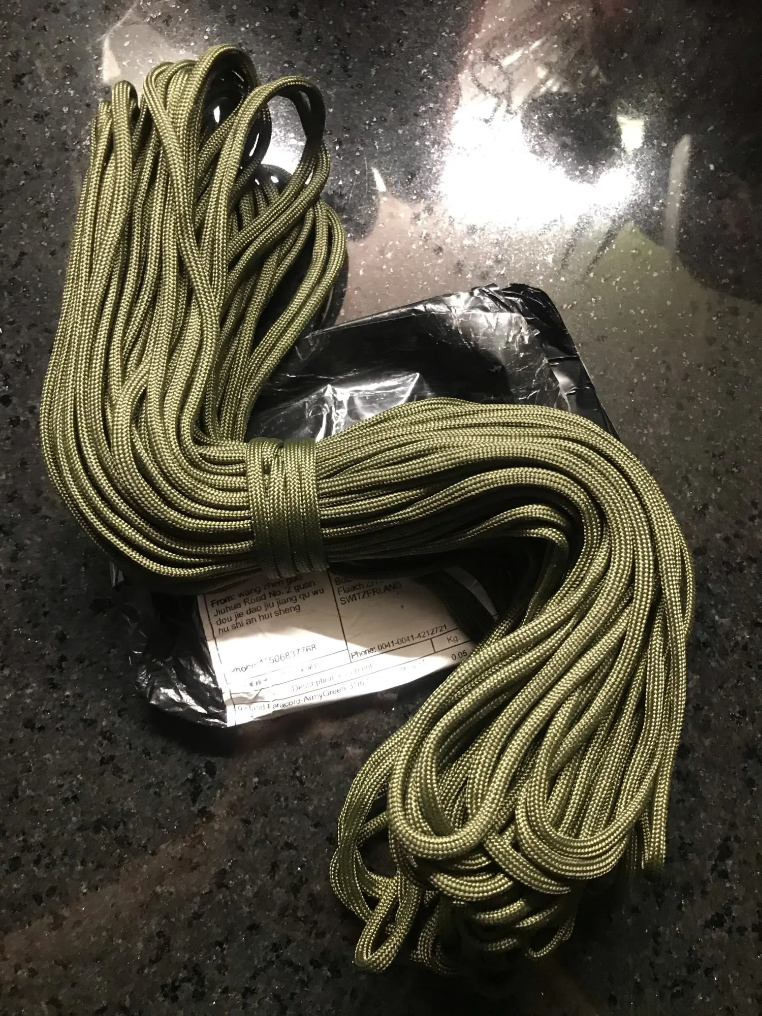 Посылку ждал ровно два месяца, долго но пришла. Положили прямо в почтовый ящик, отслеживалась только до границы. До настоящего паракорда этому шнуру как до Пекина раком, но мне на ботинки сойдёт.