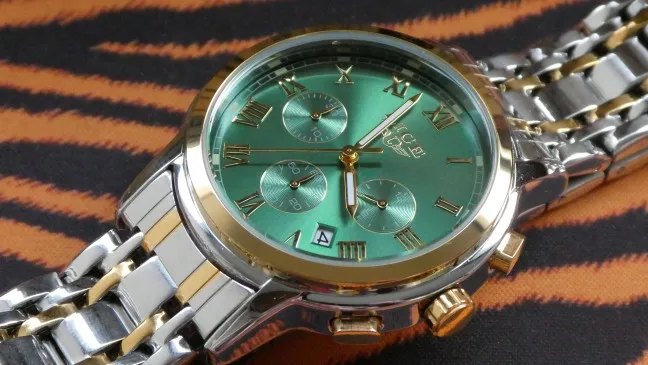 Часы пришли примерно за 2 недели, упакованы хорошо, коробочка картонная крепкая. Ожидала что часы будут механические, а они кварцевые( на батарейке) . Не настроить хранометры, на русском инструкции нет.