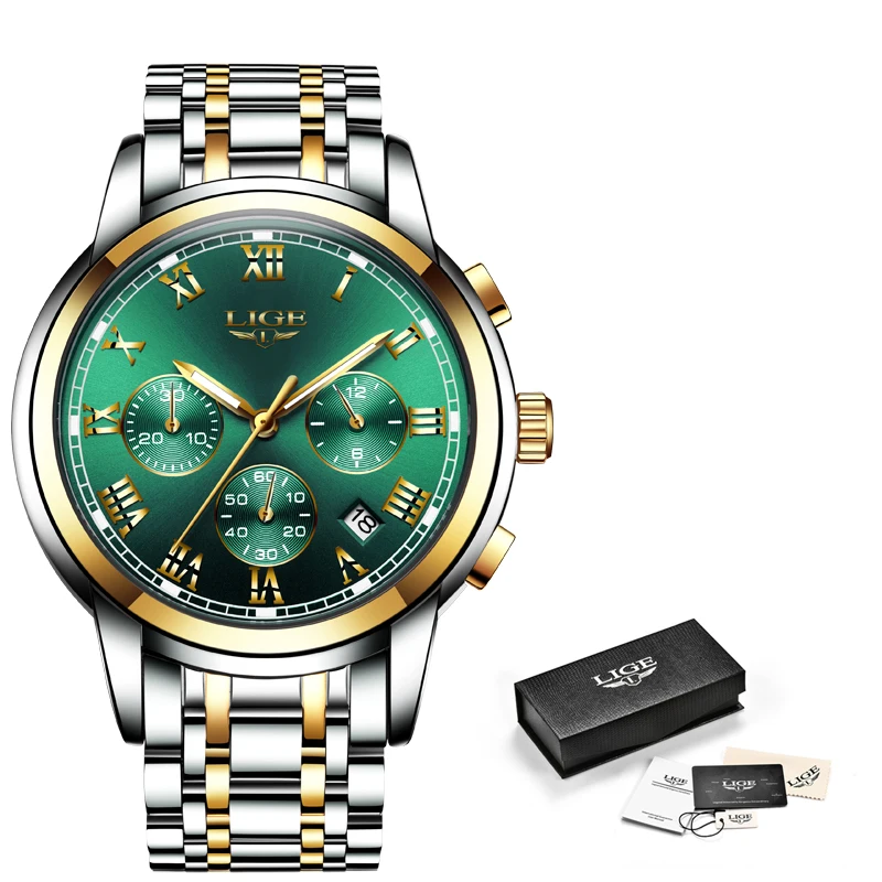 Часы мужские 2021 LIGE лучший бренд класса люкс зеленый Модный хронограф мужские спортивные водонепроницаемые все стальные кварцевые часы Relogio Masculino
