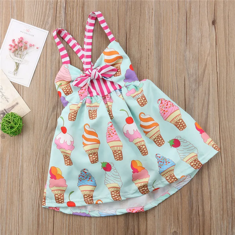Летние платья для маленьких девочек без рукавов с принтом мороженог...