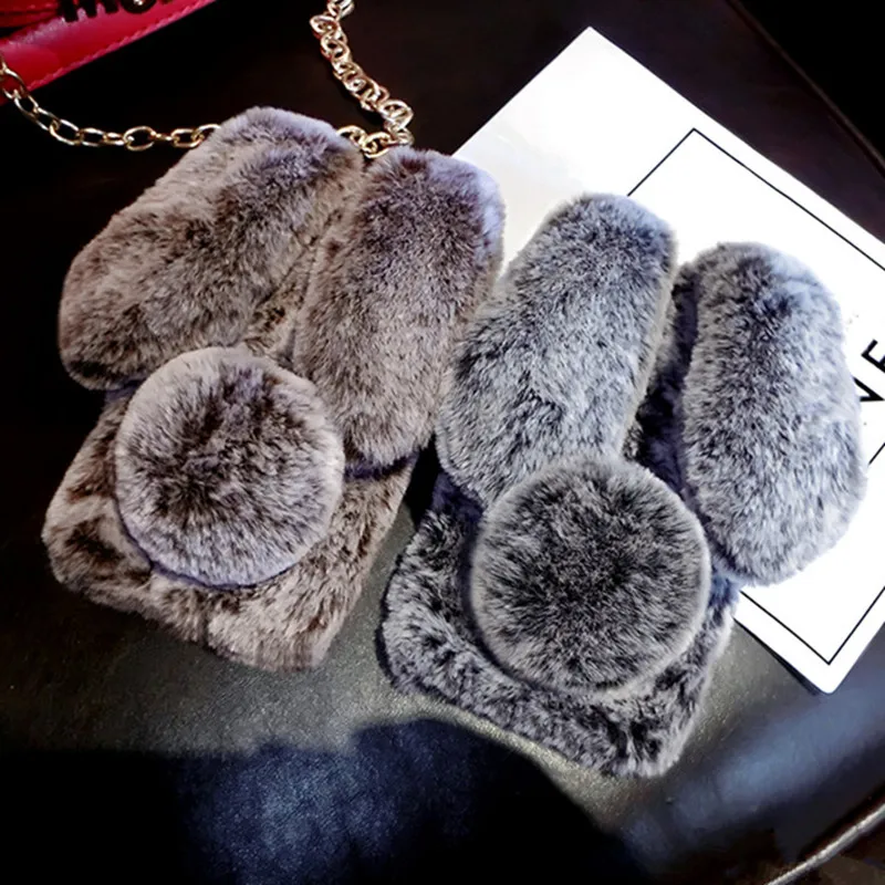 Модный силиконовый чехол с пушистым кроличьим мехом для Samsung Gal...