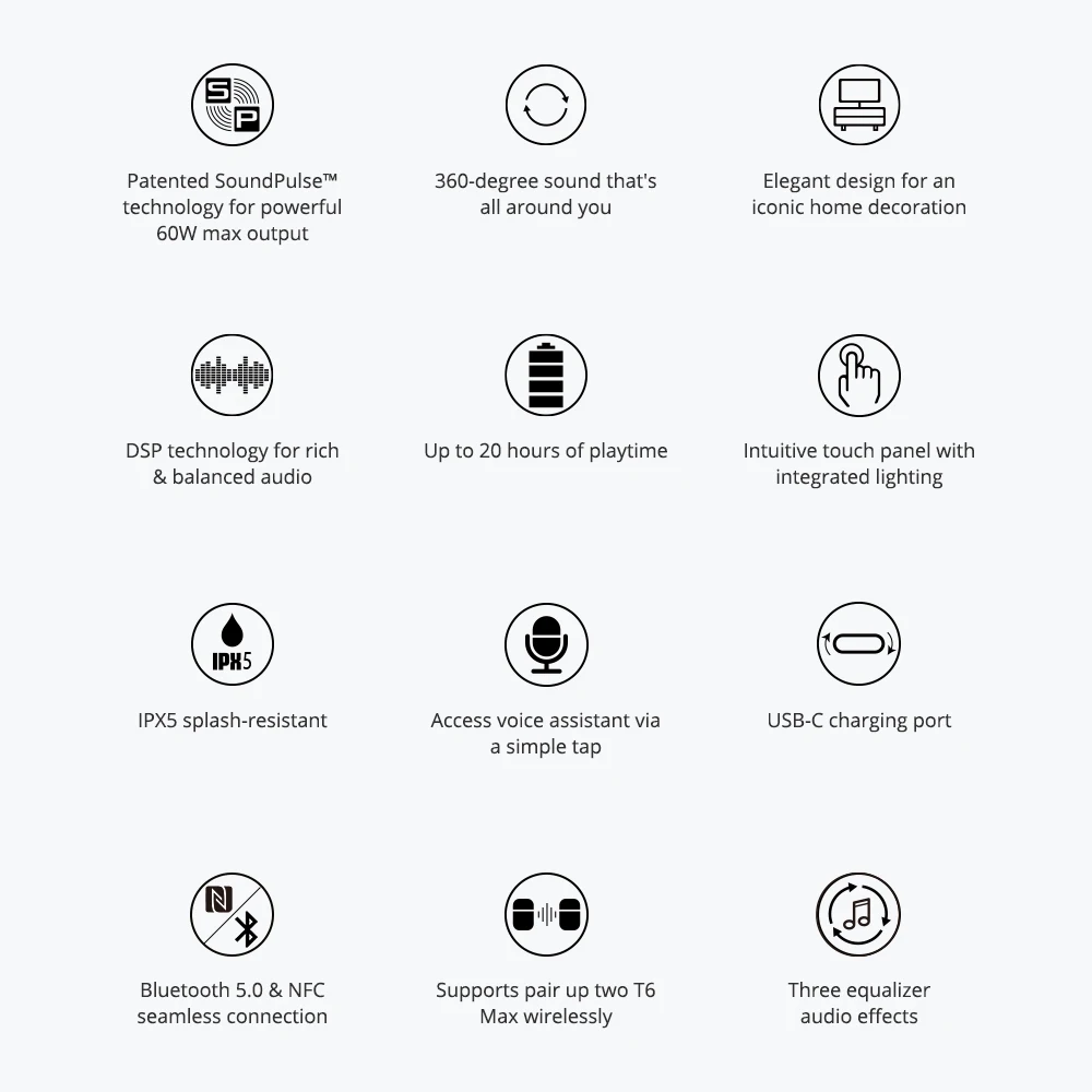 Bluetooth-Колонка Tronsmart T6 Max, 60 Вт, с голосовым помощником, IPX5, NFC, 20 ч воспроизведения