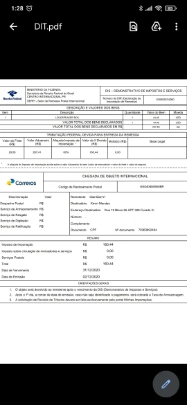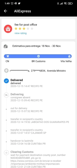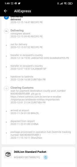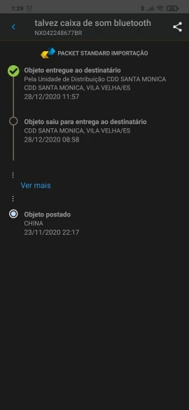 Я не получил товар у себя дома, в дополнение к тому, что они отправили с другим кодом отслеживания, а затем они уведомили меня о другом коде отслеживания, они также уведомили меня о том, что я получил продукт, Но я не получил ничего в своем доме с первым кодом отслеживания или со второй кодом отслеживания. И я не получил возврат средств, была ошибка в отправке, и я в итоге оказался без продукта и без возврата денег. Nao recebi o produto em minha casa, além do que me mandaram com um código de rаstreamento diferente e depois me informaram sobre o outro código de rastreamento, também informaram, proreceto рождественская одежда; recebi nada em meu casa com o primeiro código de rаstreamento de código ou com o segundo código de rаstreamento. E Nao recebi o reembolso, teve erro deles no envio e acabei sem o produto e sem reembolso.