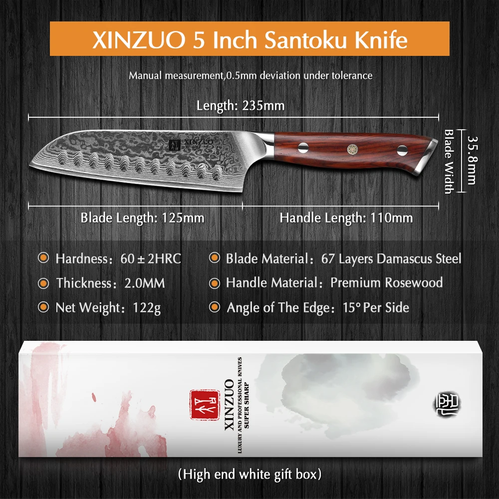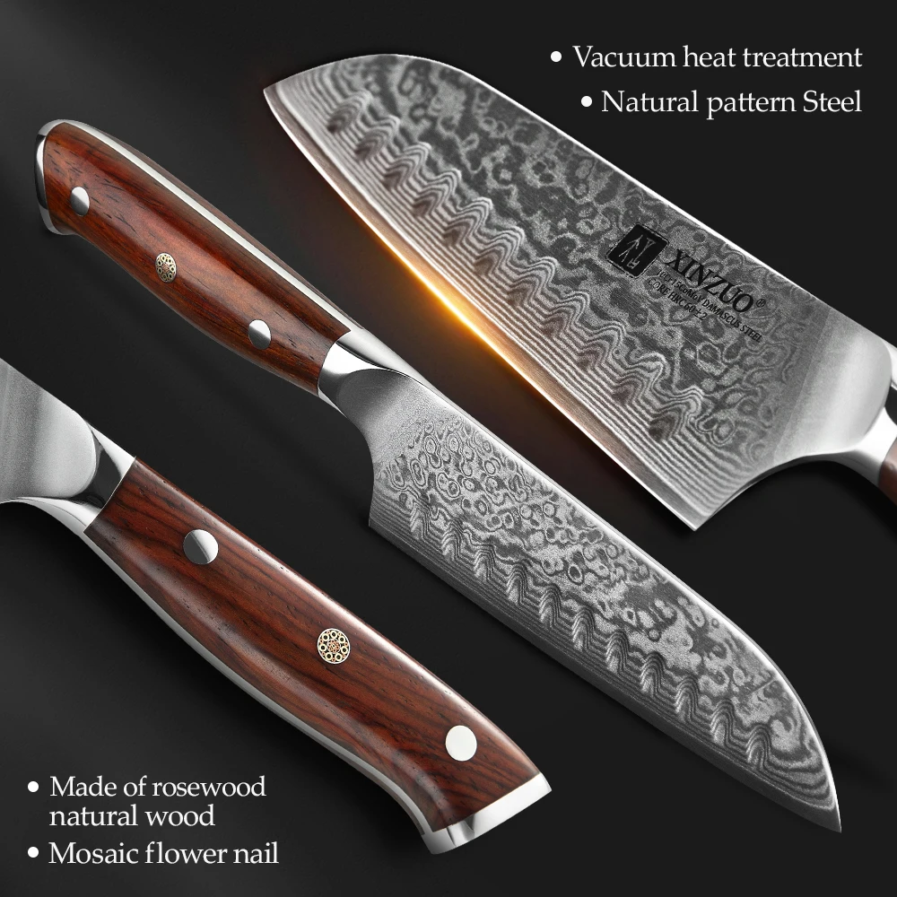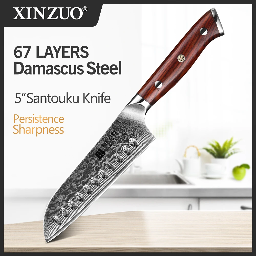 XINZUO 5-дюймовый НОЖ сантоку, лезвие из высокоуглеродистой дамасской стали, кухонные ножи, бритва, острый нож шеф-повара, кухонный инструмент, ручка из палисандра