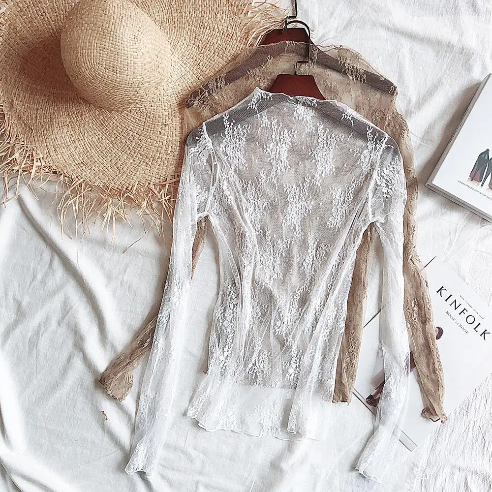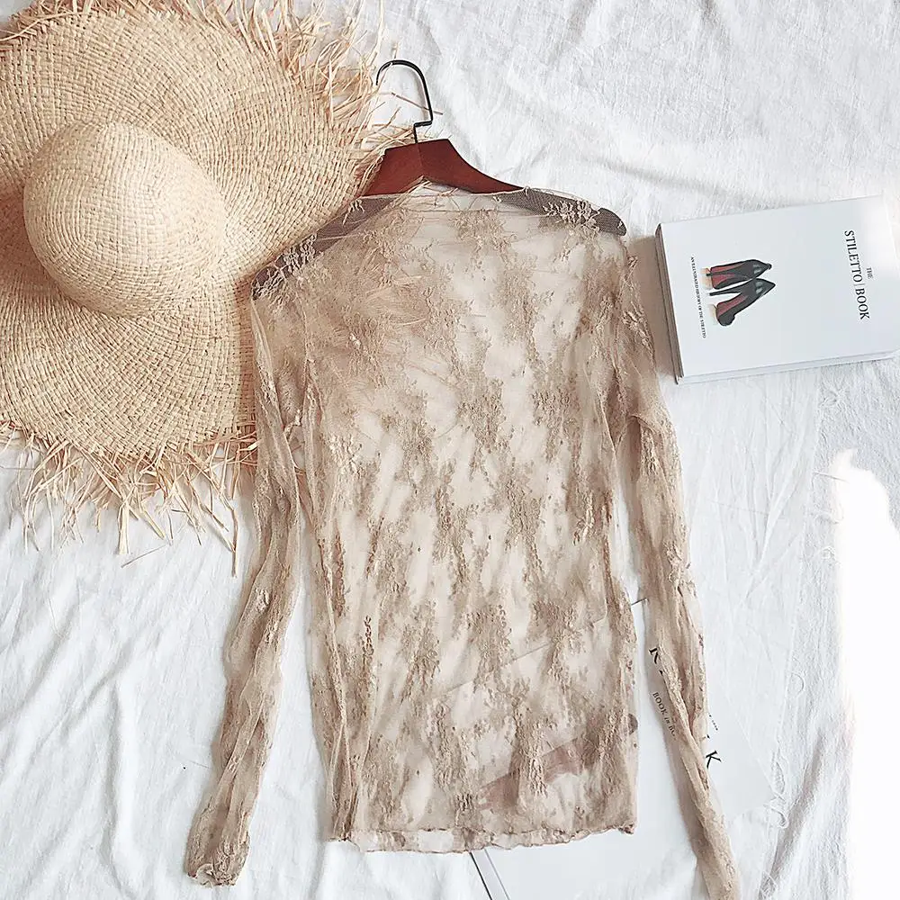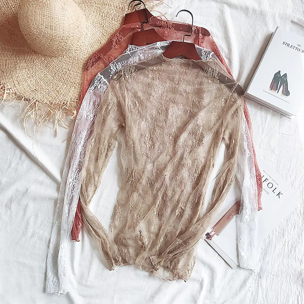Женская кружевная блузка Autume, зимняя прозрачная сетчатая блузка с длинным рукавом, 2019