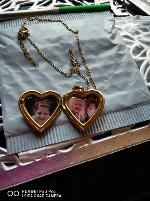 кулон просто супер, красиво и качественно сделан, не знаю будет ли стираться черное покрытие, дополню если такое случится. Фотографии немного темноваты, но все отчётливо видно, просто нужно было отправить более светлые фото. Фото внутри качественно сделаны, даже если попадёт вода: они не испортятся.