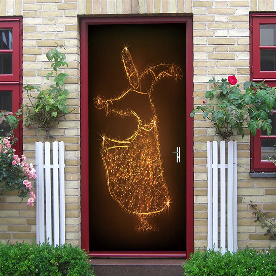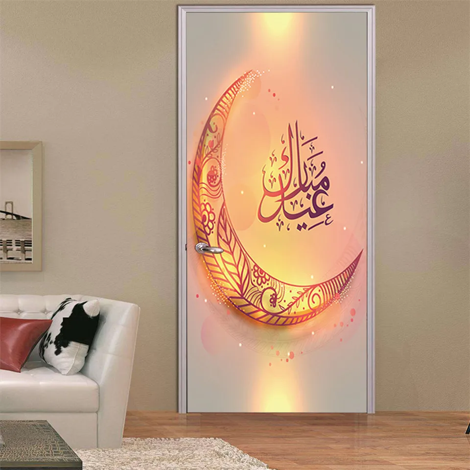 2 шт.компл. наклейка на дверь для празднования мусульманских праздников Сделай Сам ПВХ самоклеящаяся Водонепроницаемая на двери домашний декор обновленный постер росписи