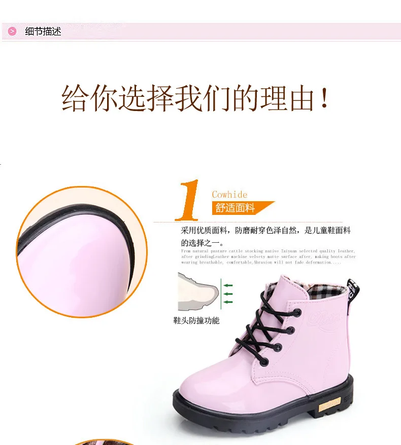 Ботинки для девочек, из искусственной кожи, зимние, водонепроницаемые, Осенние, чистые, черные, розовые, теплые, ботинки со шнуровкой