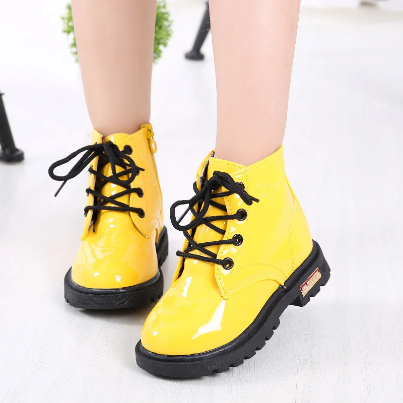 Ботинки мартинсы для девочек и мальчиков, ПУ кожа, водостойкие, зим...