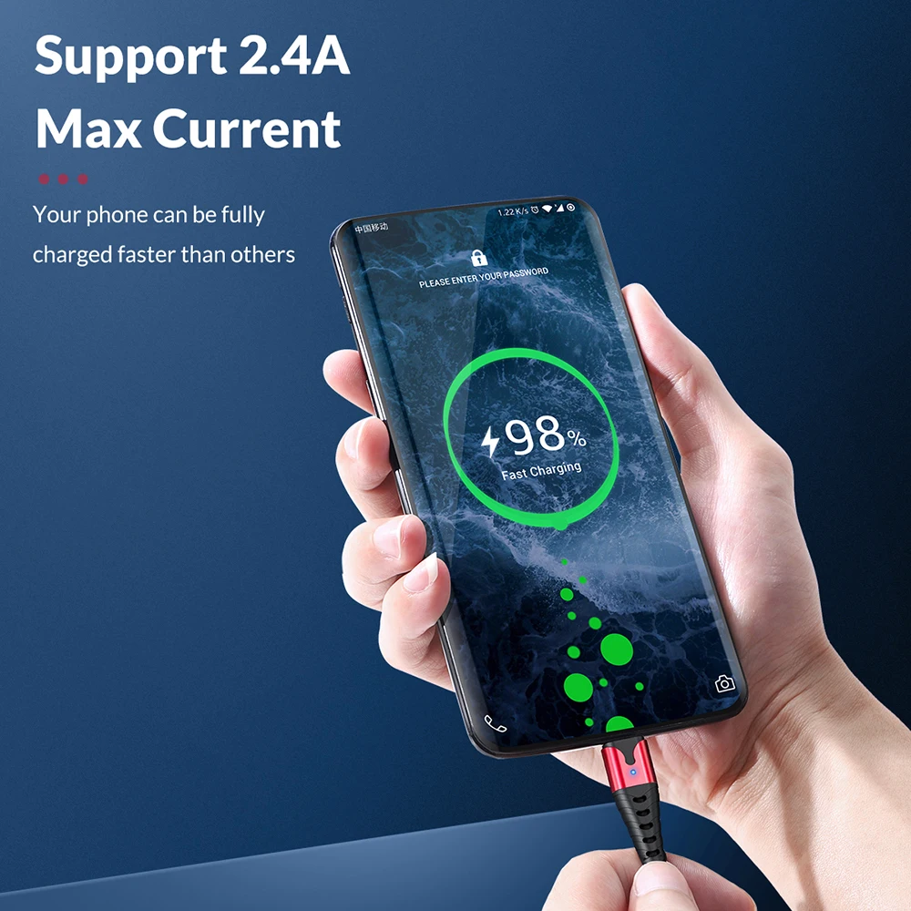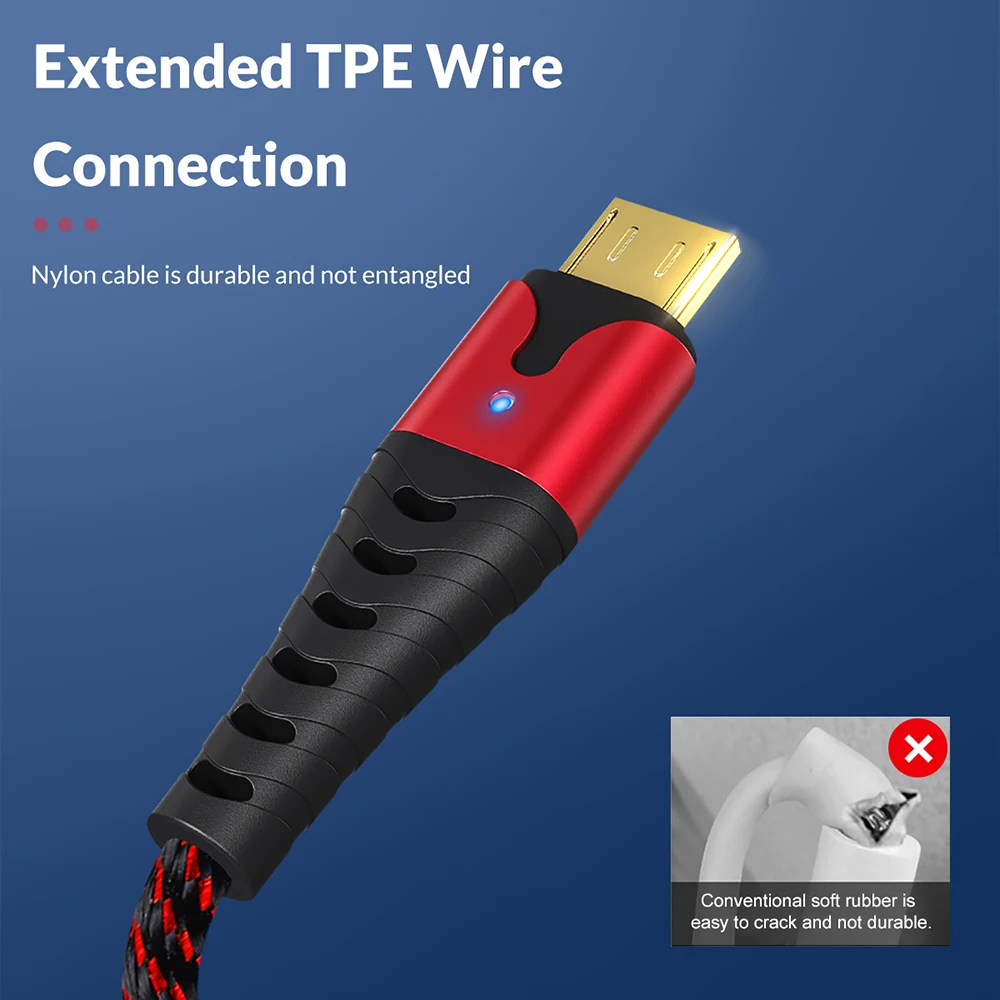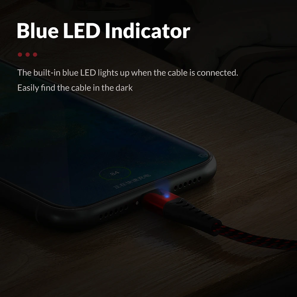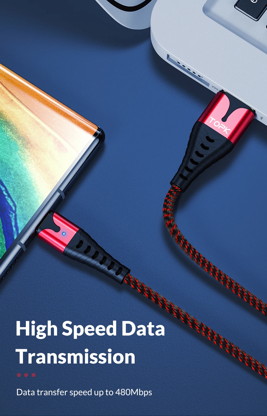 Кабель Micro USB TOPK светодиодный 1 м для быстрой зарядки Xiaomi Samsung Huawei Android мобильный телефон