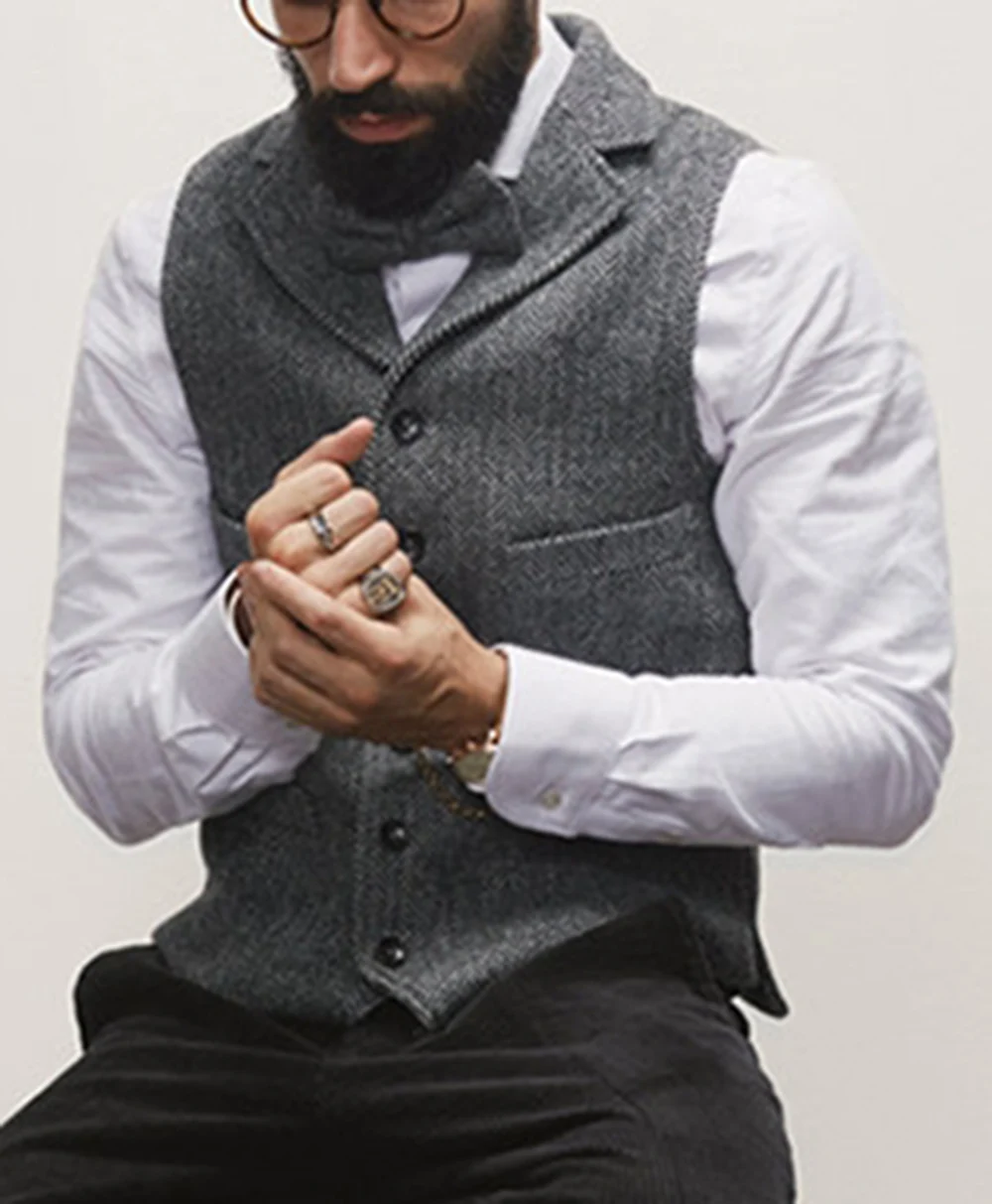 Жилет мужской шерстяной, твидовый, приталенный, В Елочку