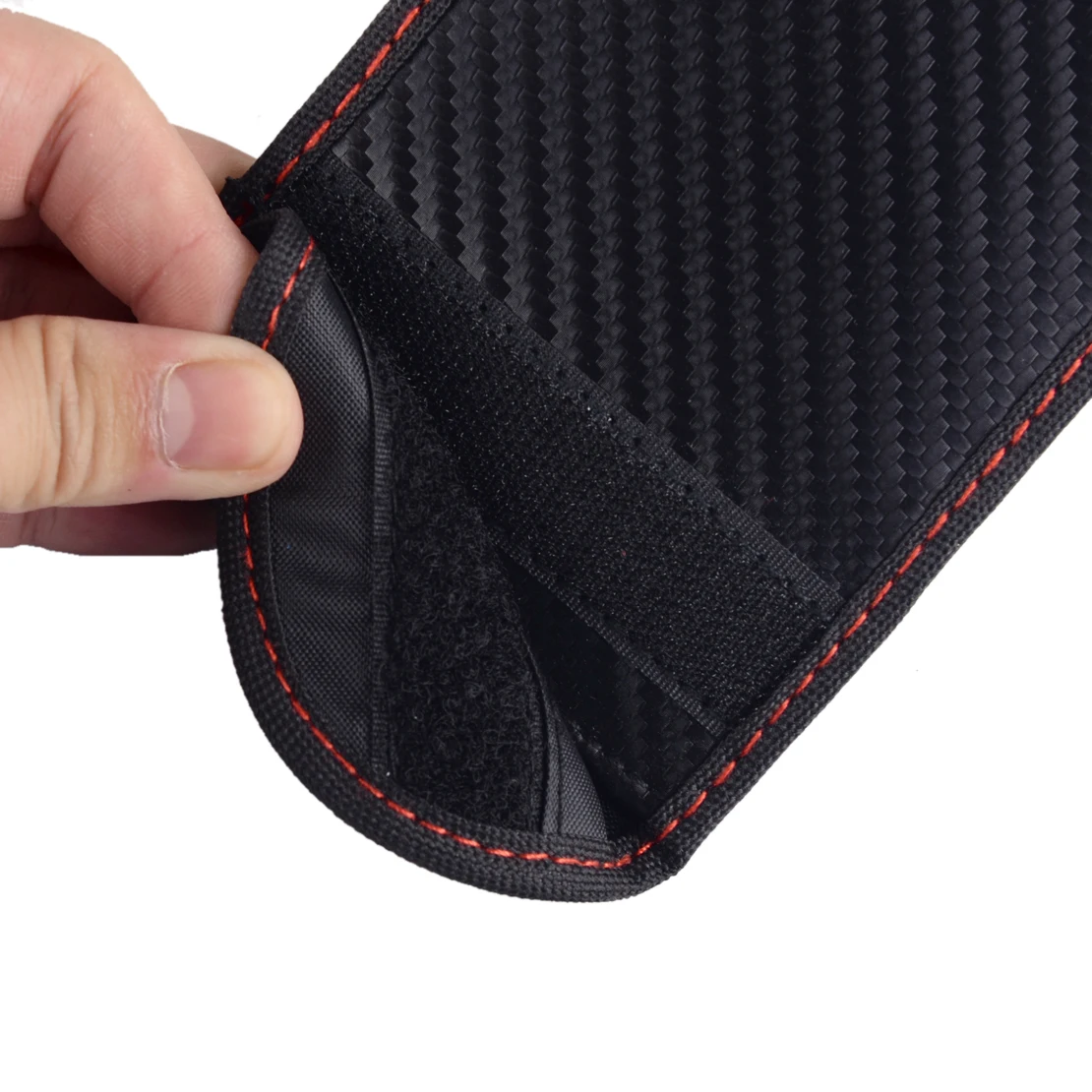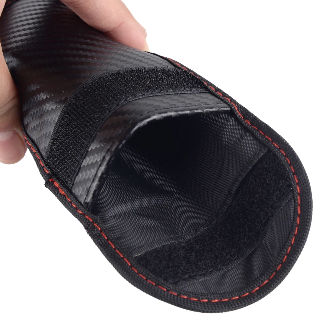 Состояние:100% новыйЦвет:Черная текстура из углеродного волокна и красная линияМатериал:Искусственная кожаРазмер:Approx.12.8x8.6 см (5,04x3,39 дюйма)(LxW)Сила затухания сигнала:90 дБЭффективность защиты сигнала:100%Подходит для:Используется для любого изготовления и модели брелка, который помещается в сумкеТовар включает в себя:2 х Автомобильный ключ чехол, блокирующий сигналСовместимость с: