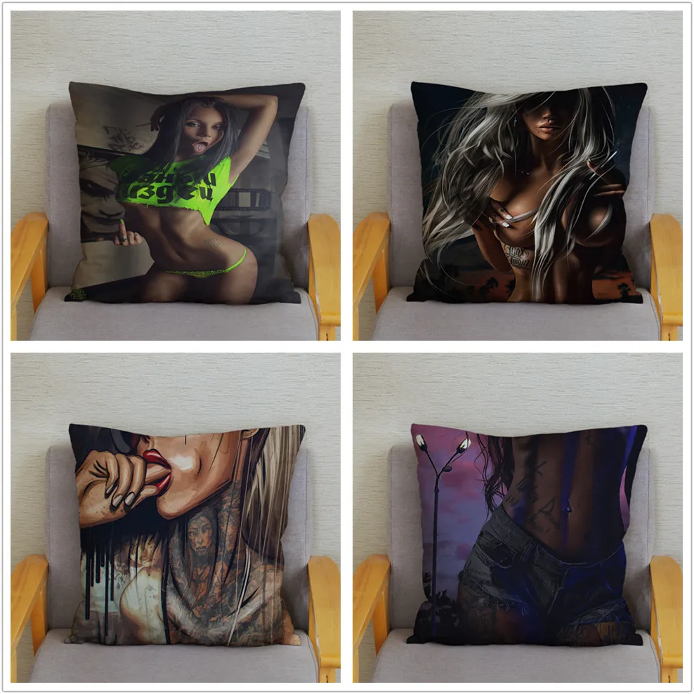 Сексуальный чехол для подушки с принтом для девочек, супер мягкие короткие плюшевые наволочки для подушки 45*45, наволочка для домашнего декора