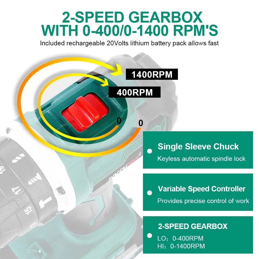 Аккумуляторный шуруповерт POSENPRO, 20 в, с переменной скоростью