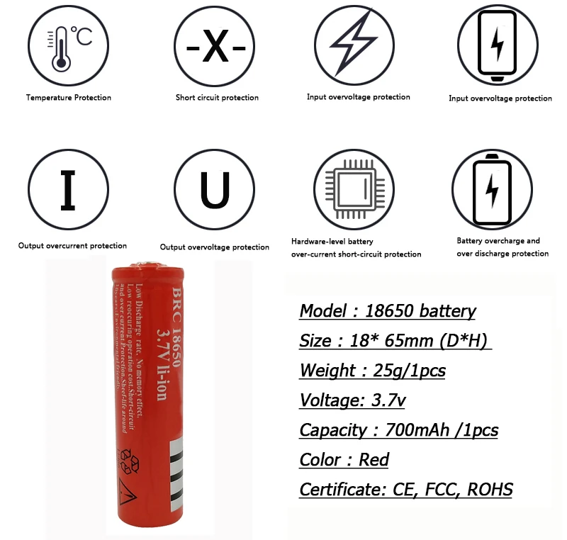 Вариант B:1 * фонарик + USB + 18650 красный аккумулятор