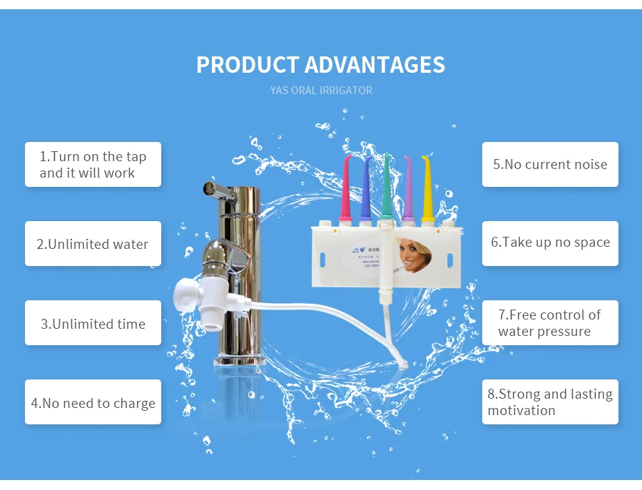 Без электричества, без шума, не нужно добавлять воду, силу удара можно регулировать.Используйте принцип давления водопроводной воды, чтобы смыть мертвый угол рта.Предотвращает образование зубного налета и зубного камня.Портативный Флоссер для воды, подходит для домашнего использования, напрямую подключается к крану.Изготовлен из абс + ПВХ, прочный и поставляется с полными аксессуарами для удобной установки.Спецификация:Состояние на 100% абсолютно новыйМатериал: АБС + ПВХ