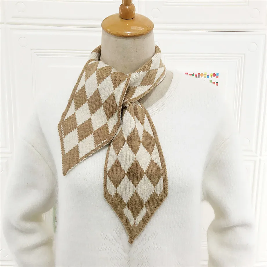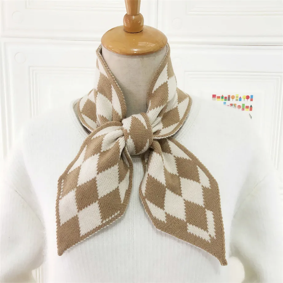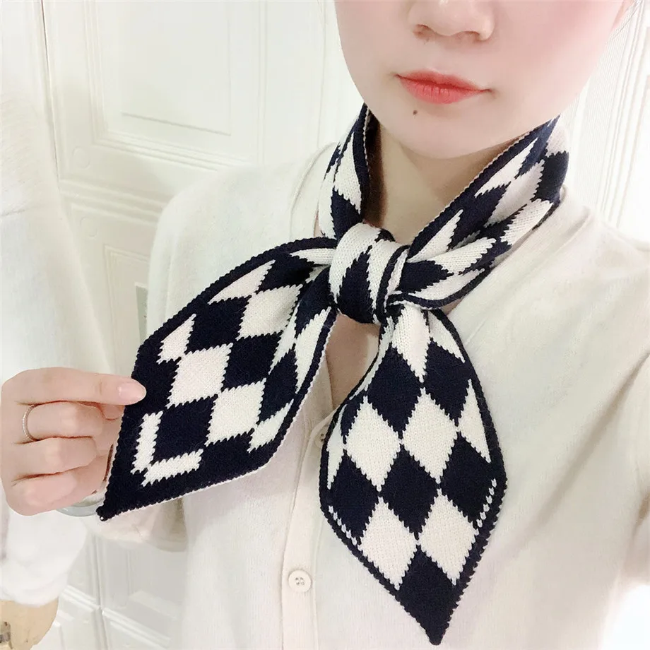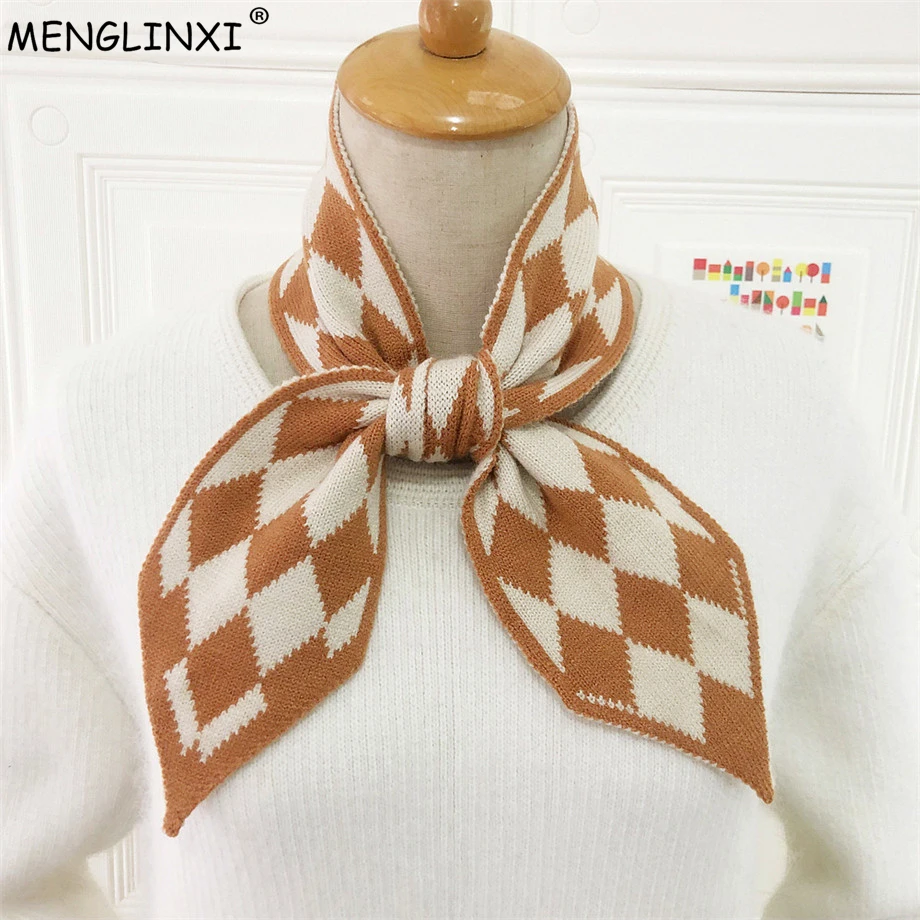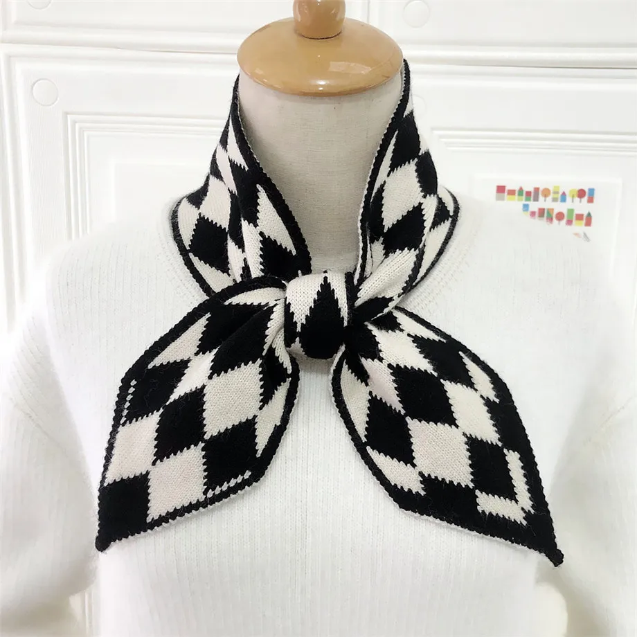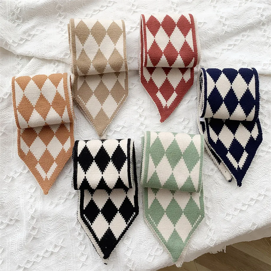 Геометрический клетчатый зимний шарф, брендовый вязаный шарф, острый угол, женский шарф, длинный узкий маленький шарф, женский шейный платок, шарфы