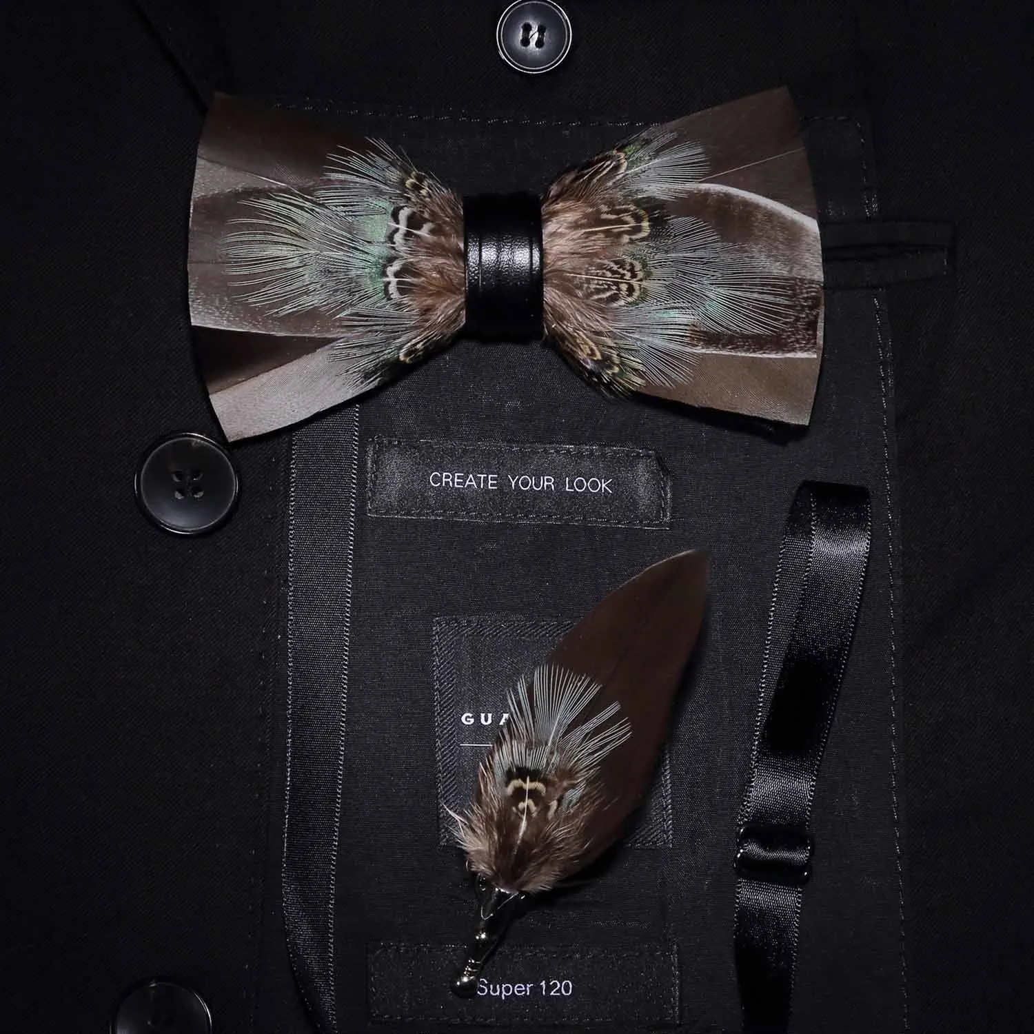 GUSLESON оригинальный галстук-бабочка с зелеными птицами и перьями натуральный ручной работы брошь-бант деревянная Подарочная коробка набор для мужчин деловечерние вечеринка Свадьба